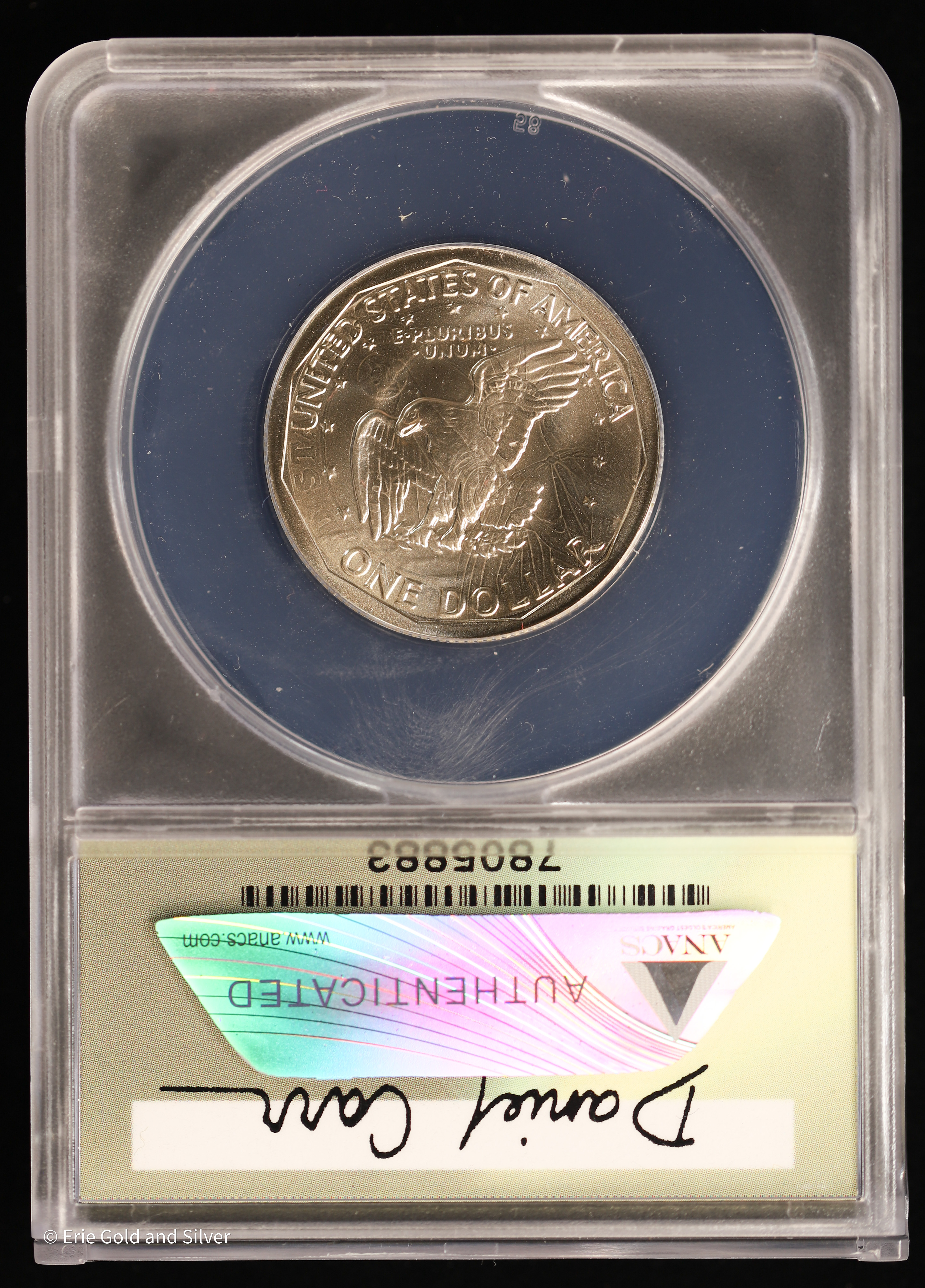 For sale is a 1979-P Dan Car Token Eisenhower $ O/S on USA 2007-10 $. Graded / Certified by ANACS at MS 70.