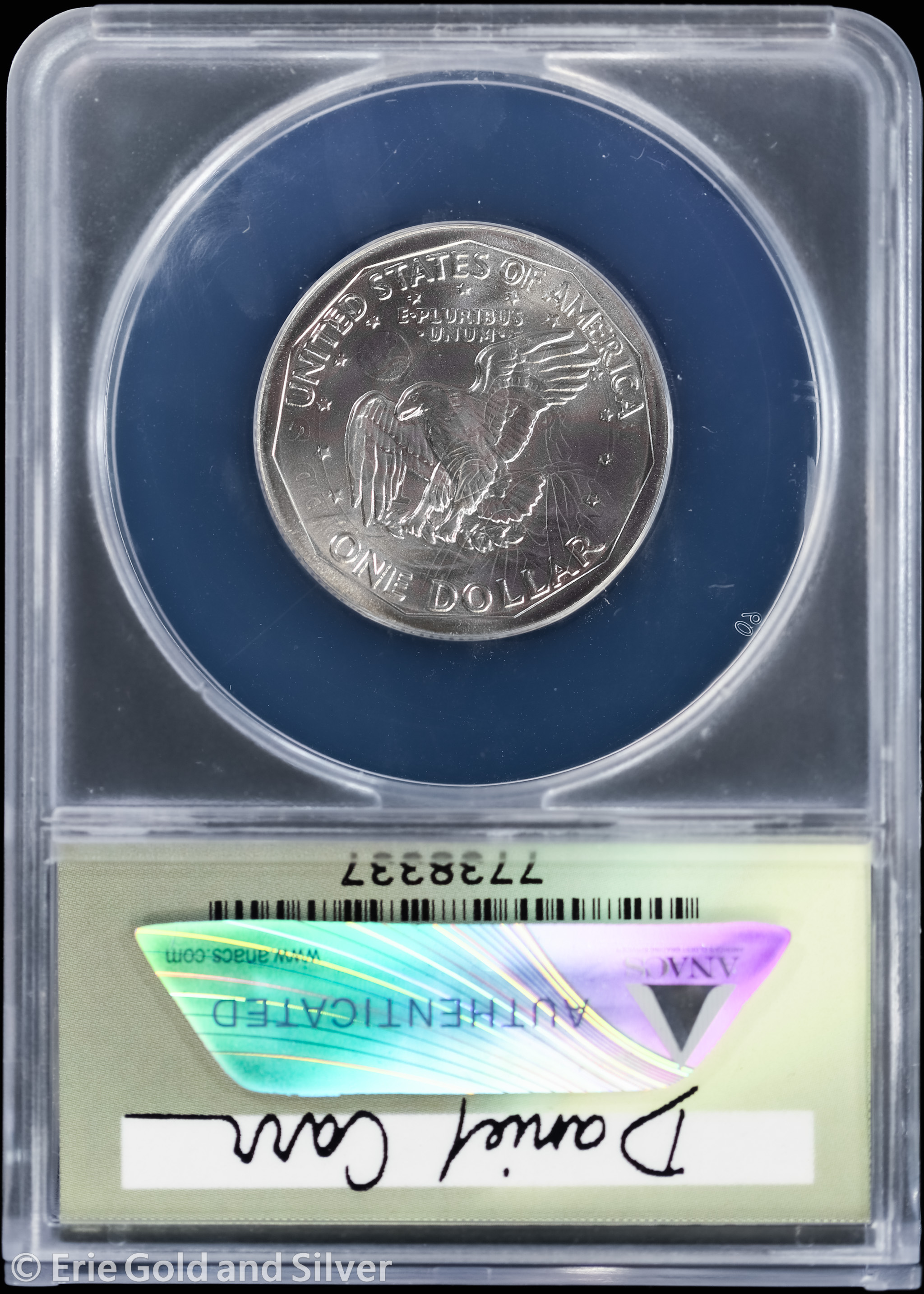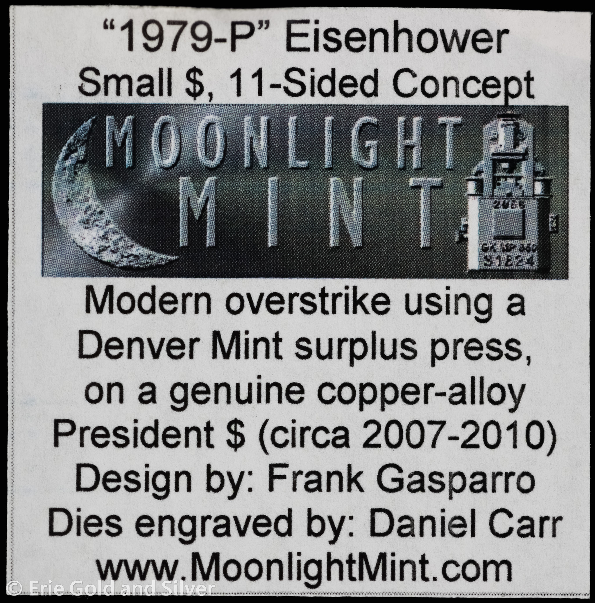 1979-P Dan Carr Moonlight Mint Token Eisenhower O/S on USA 2007-2010 ANACS MS 69