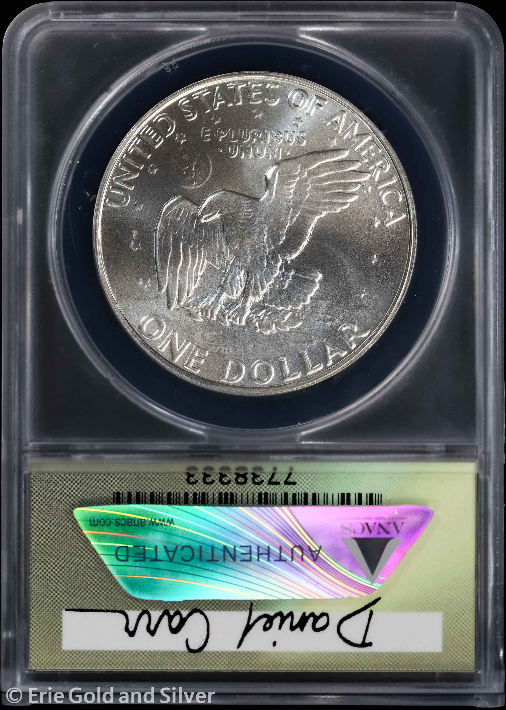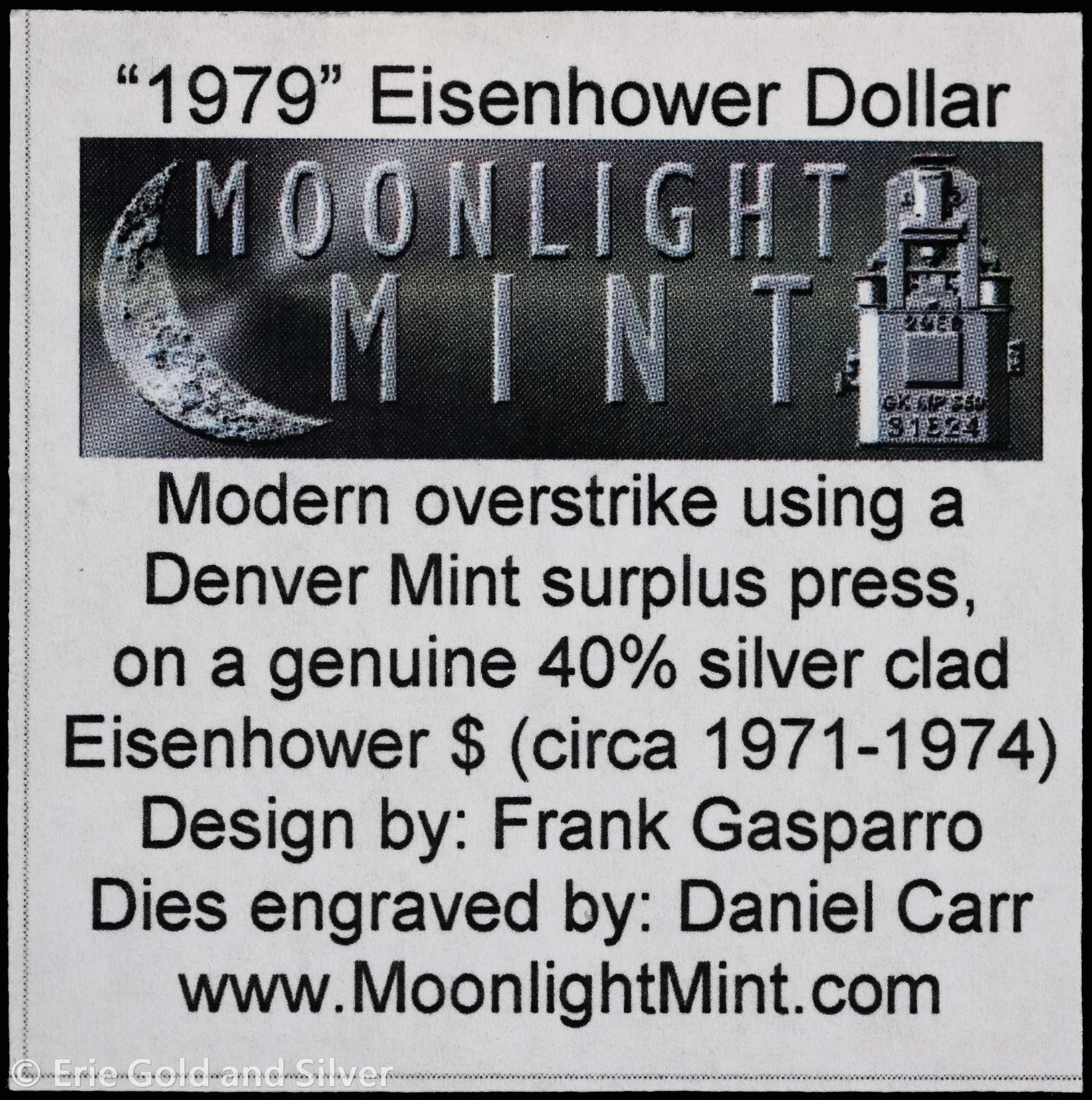 1979-P Dan Carr Moonlight Mint Token Eisenhower O/S on USA 40% 1971-1974 ANACS MS 69