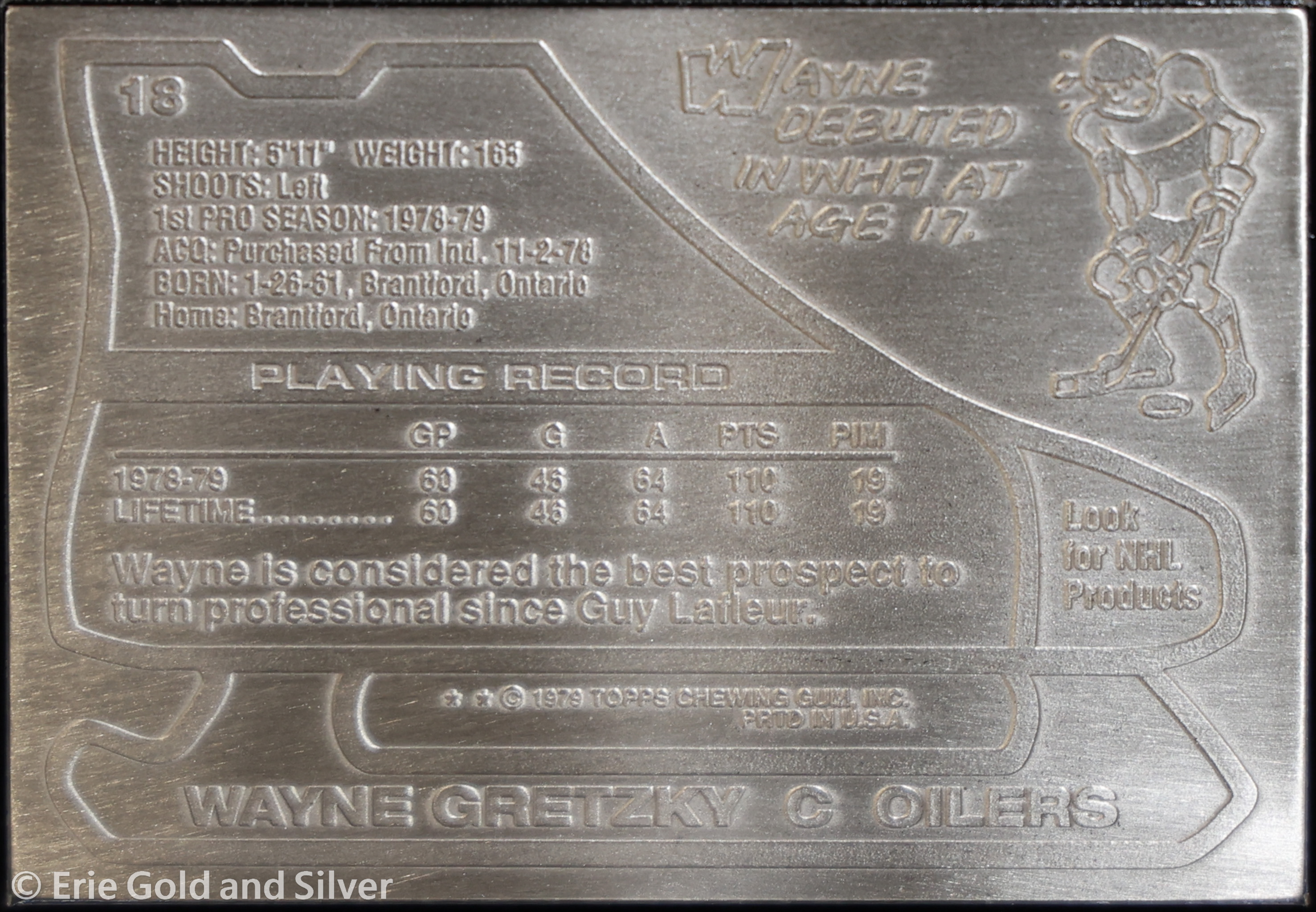 For sale is a 1979 Topps Highland Mint 4.25 oz Silver Wayne Gretzky NHL Mint-Card.