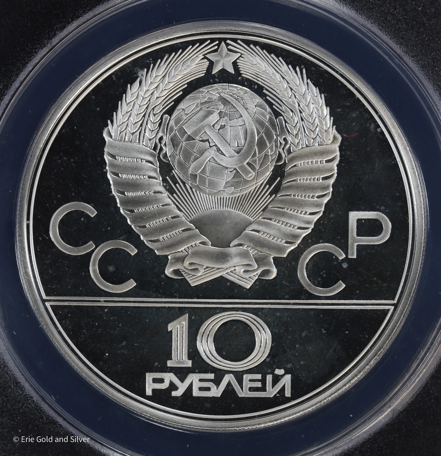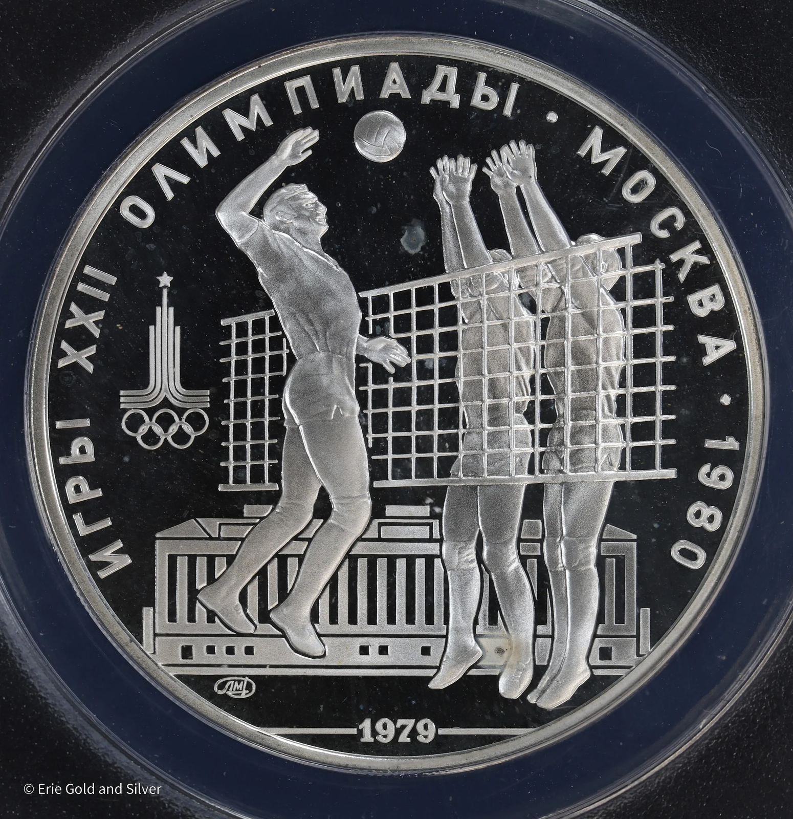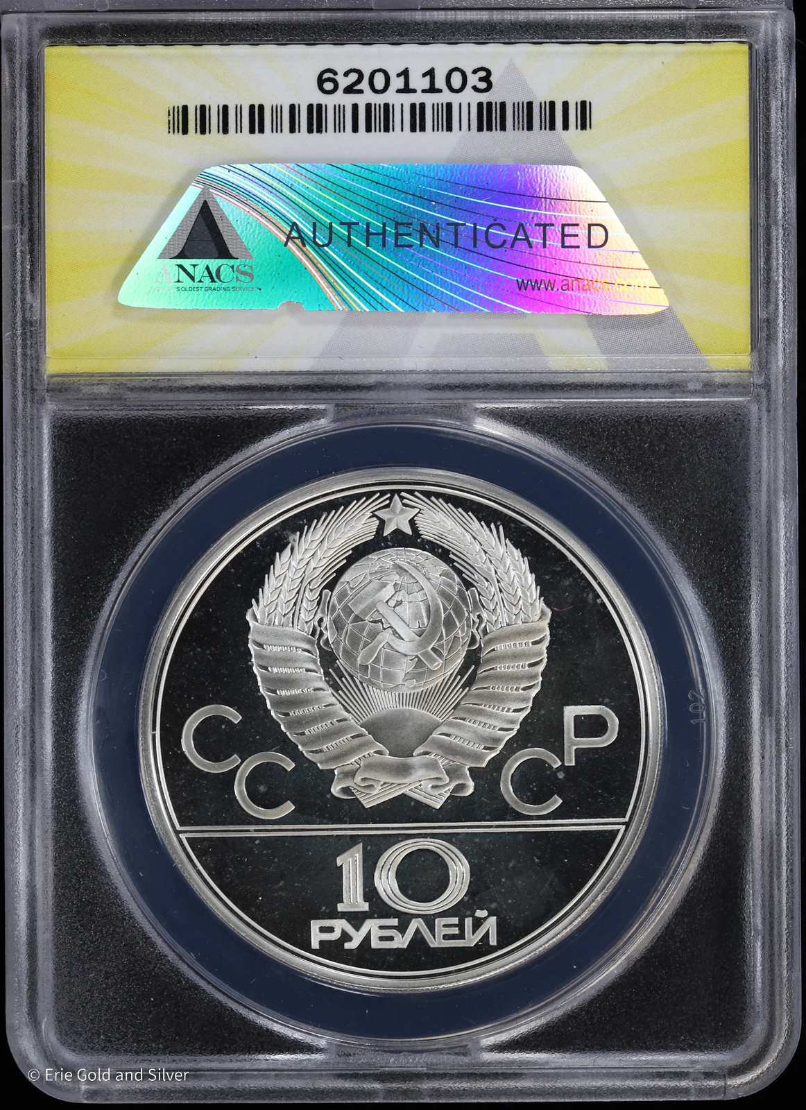 1979 USSR 10 Roubles Silver Proof Olympics Volleyball ANACS PF 68 DCAM