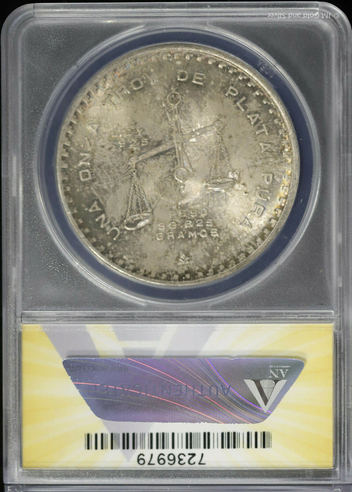 1980 Mo Mexico 1 oz Onza Silver Peso ANACS MS 65 | Toned Uncirculated UNC BU