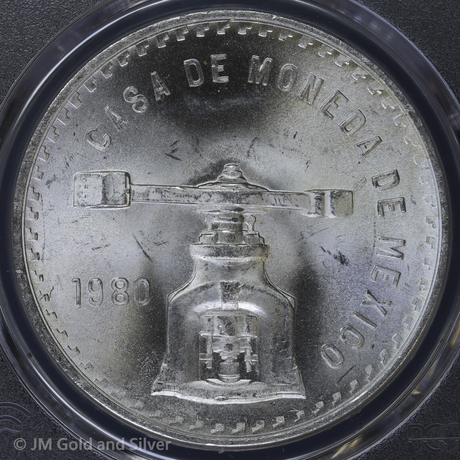 1980-Mo Mexico 1 oz Silver Casa De Moneda PCGS MS 67 | Prooflike Reverse UNC BU