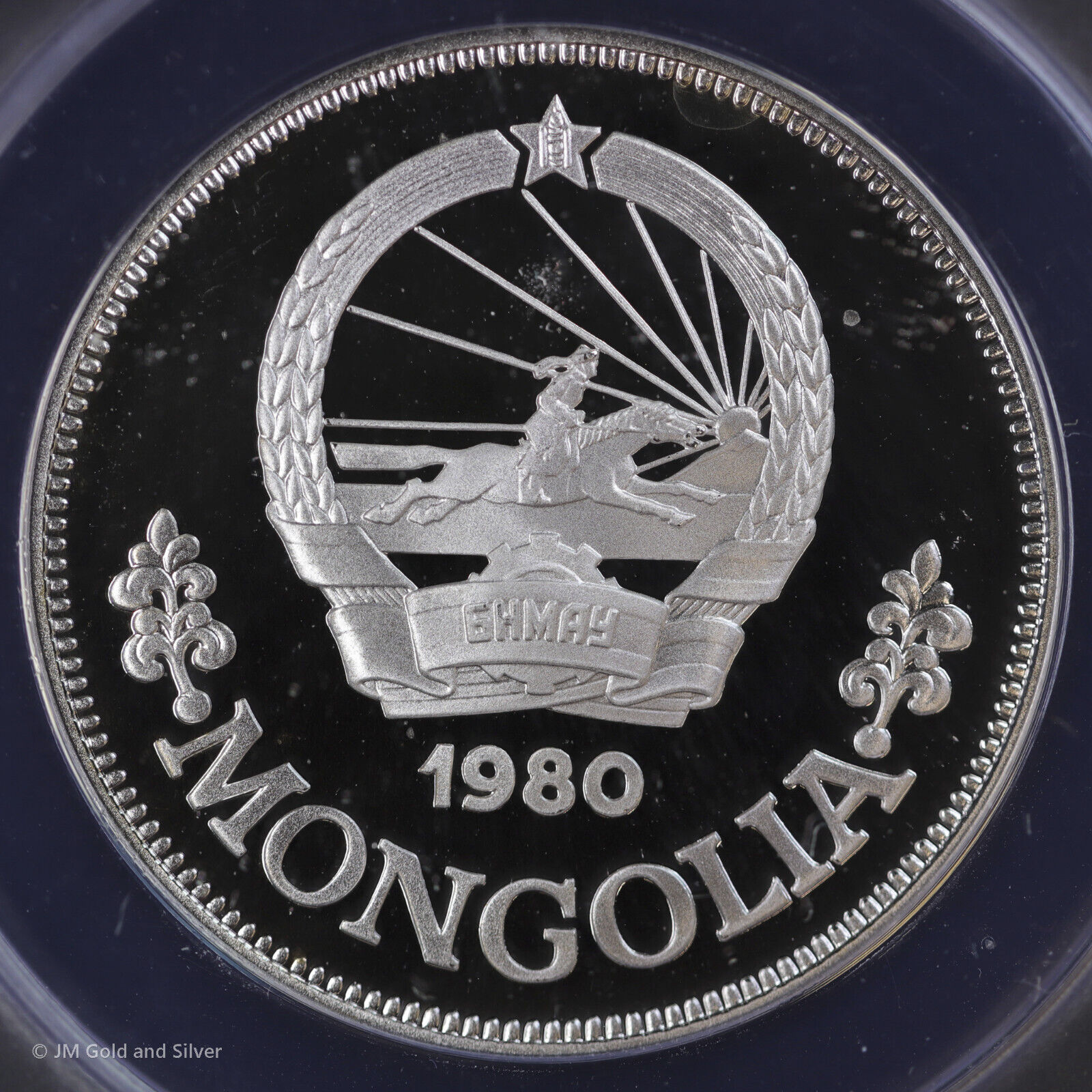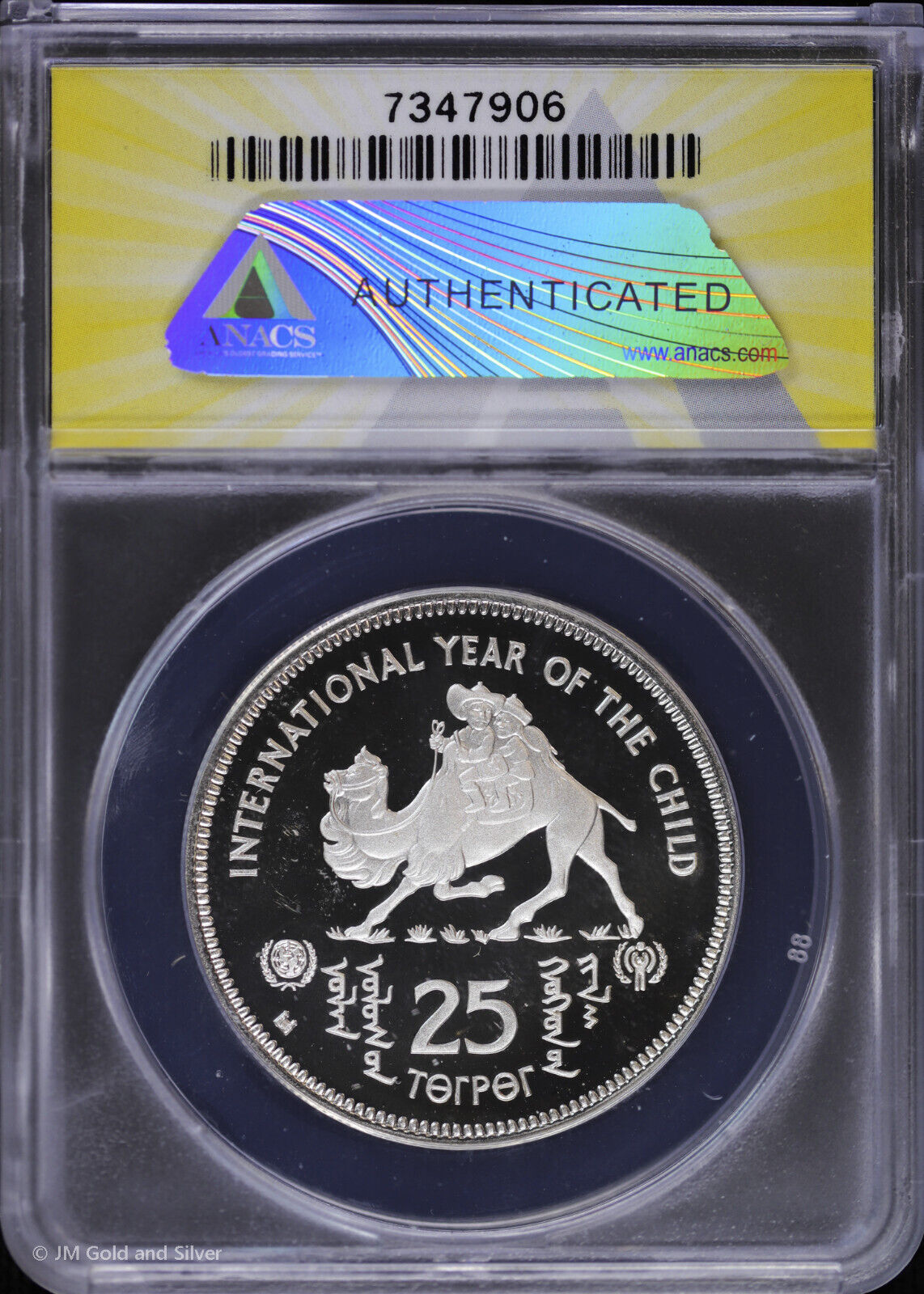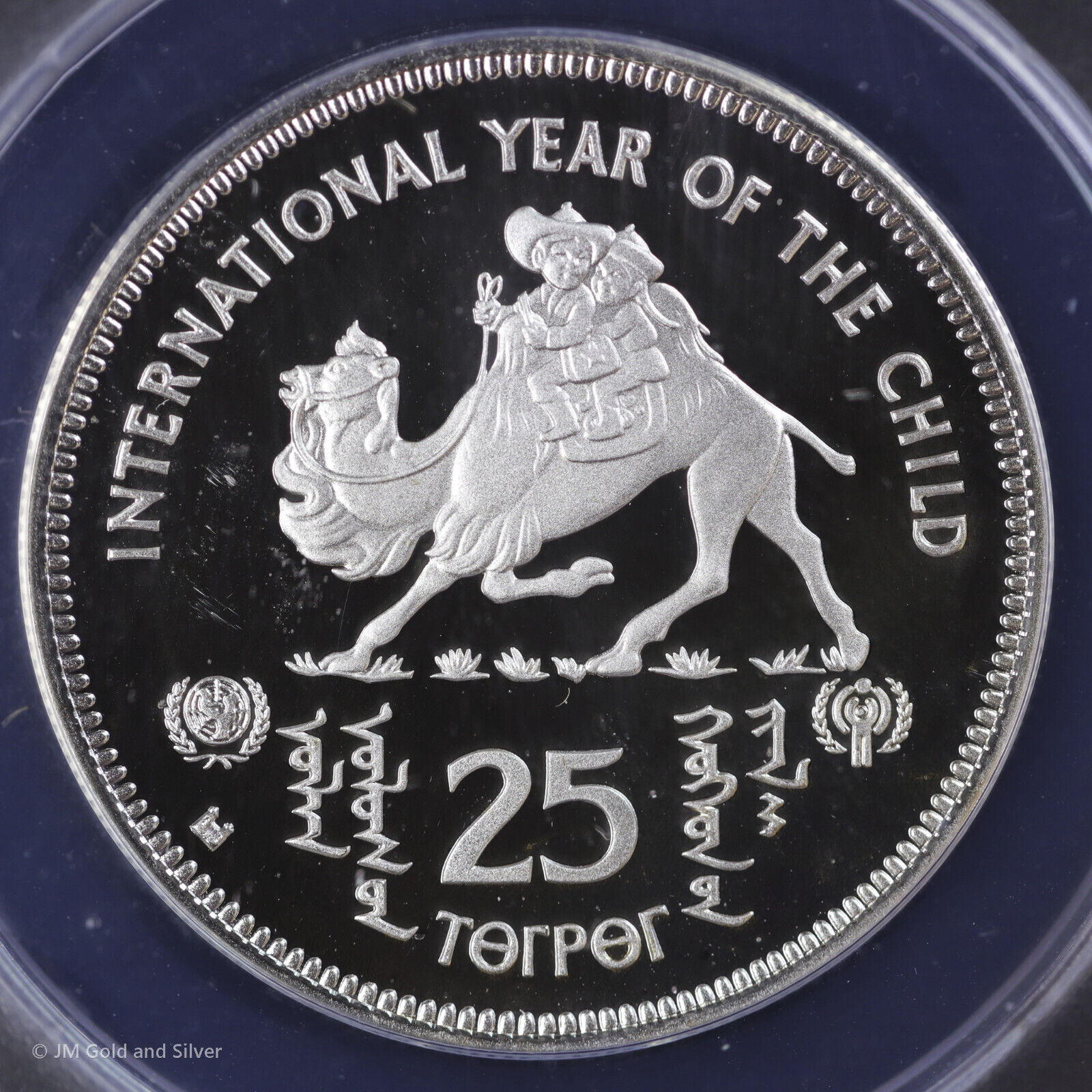 1980 Mongolia Proof Silver 25 Tugrik ANACS PF 68 DCAM | Children Riding Camel
