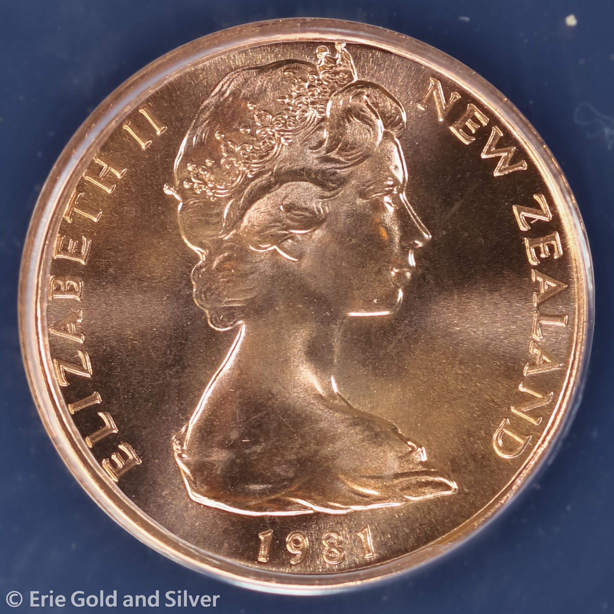 For sale is a 1981 New Zealand Elizabeth II Cent. Certified / graded by ANACS at MS 68 Red.