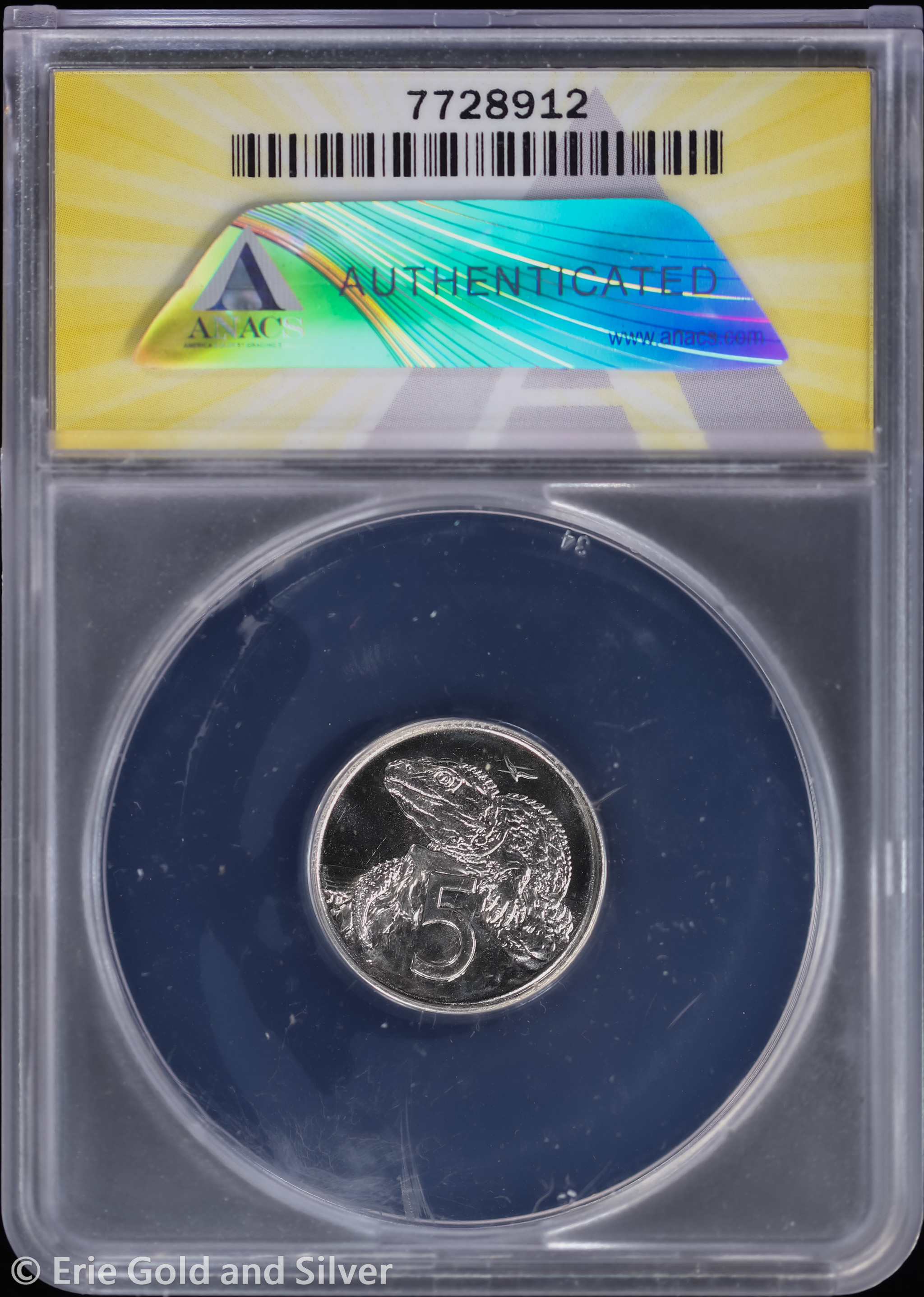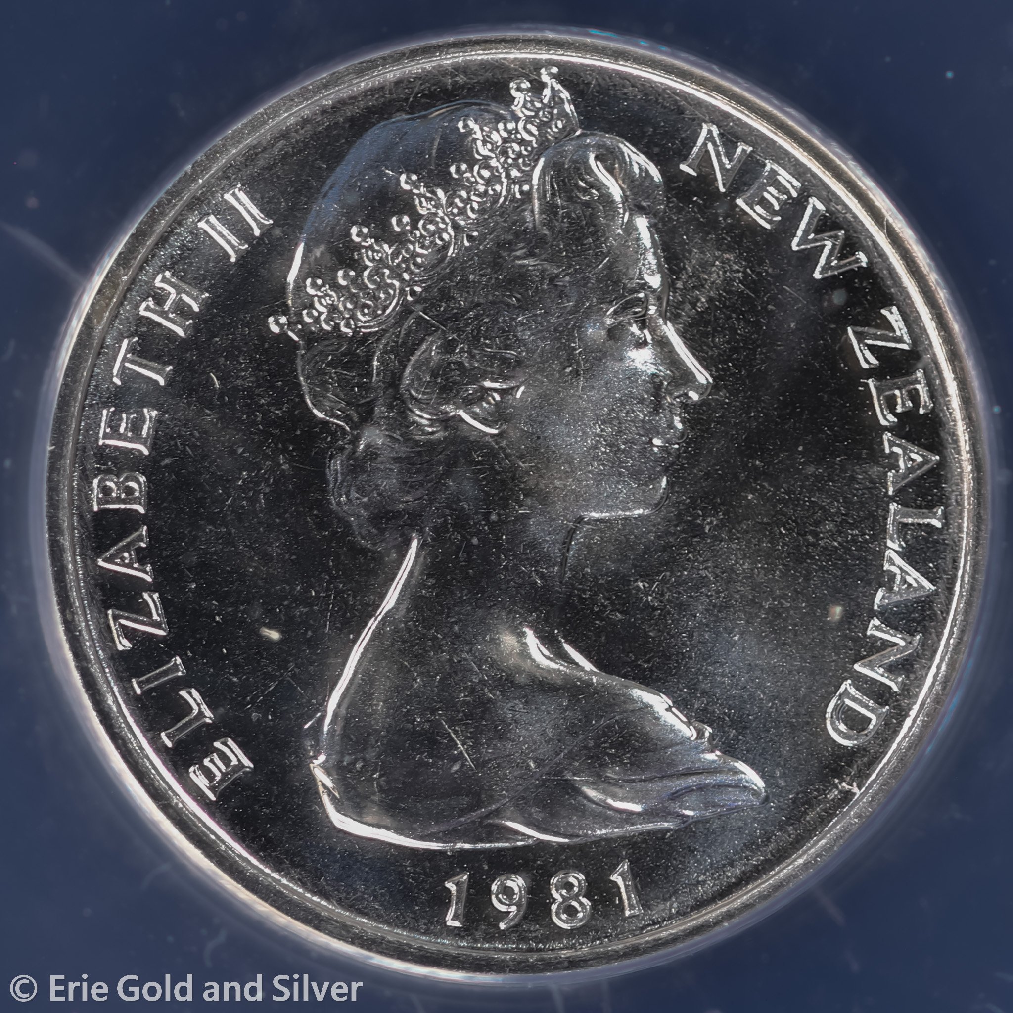 For sale is a 1981 New Zealand Elizabeth II 5 Cents. Certified / graded by ANACS at MS 68.
