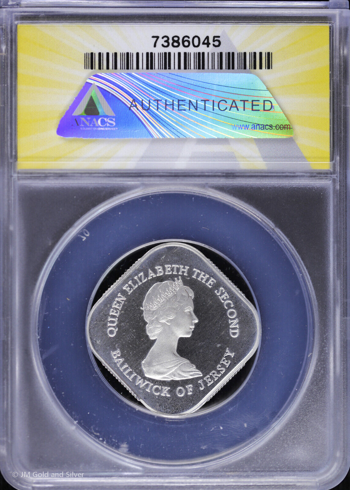 1981 Jersey Proof Silver Pound ANACS PF 68 DCAM | Square Coin Battle Bicent.