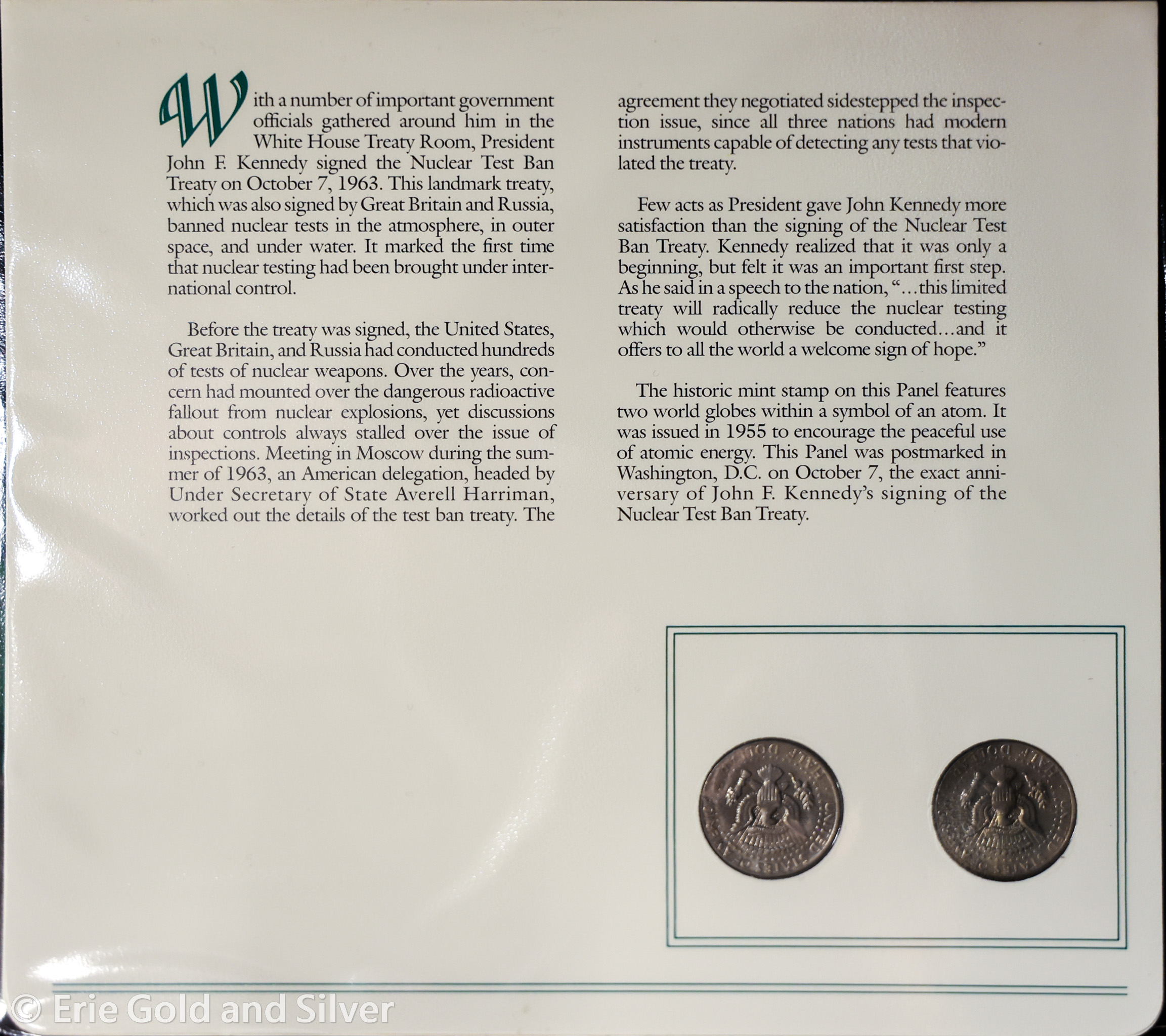 1982 PCS Kennedy Half Dollar Coin & Stamp Set - JFK Signs Nuclear Test Ban Treaty Panel