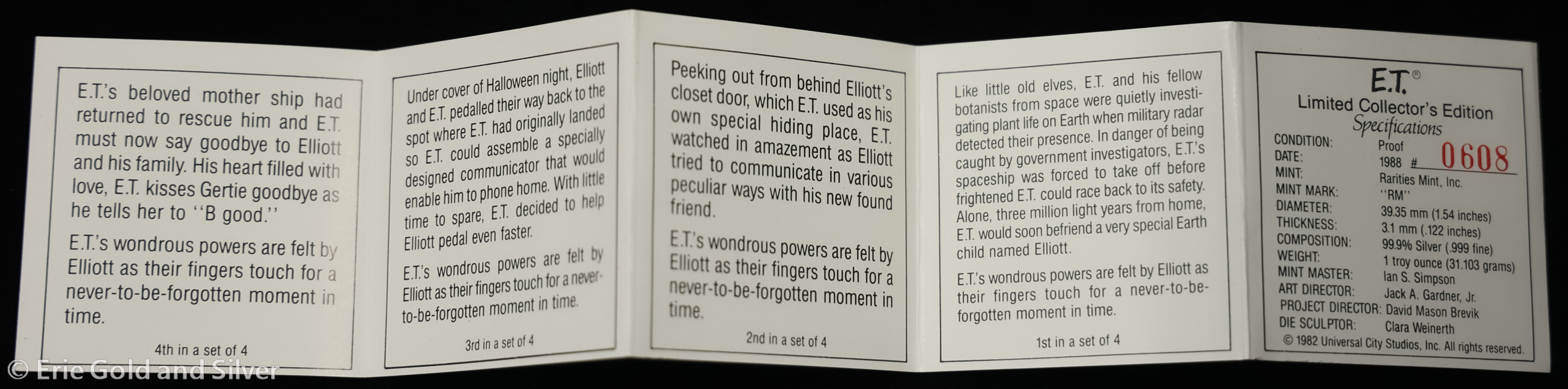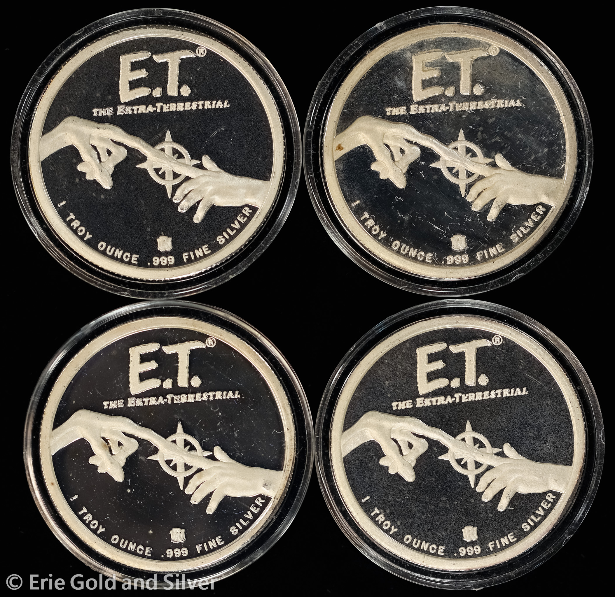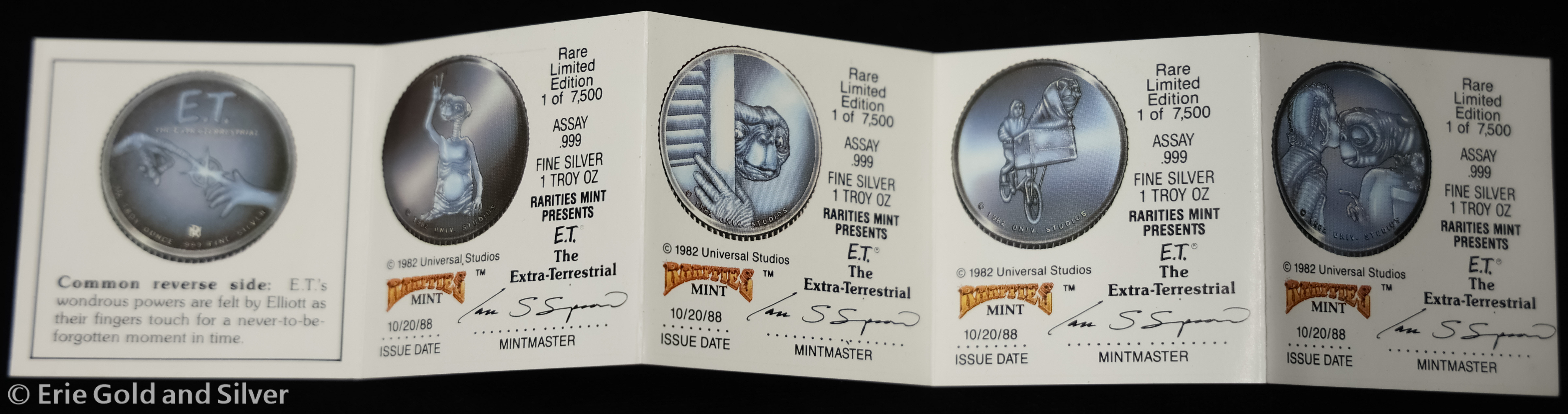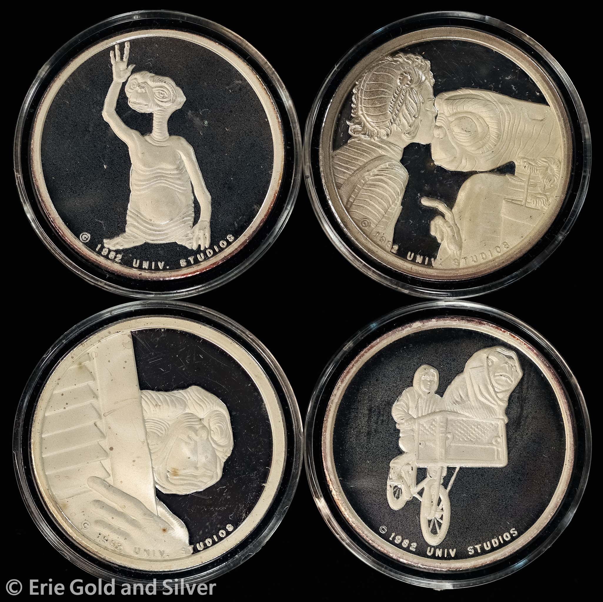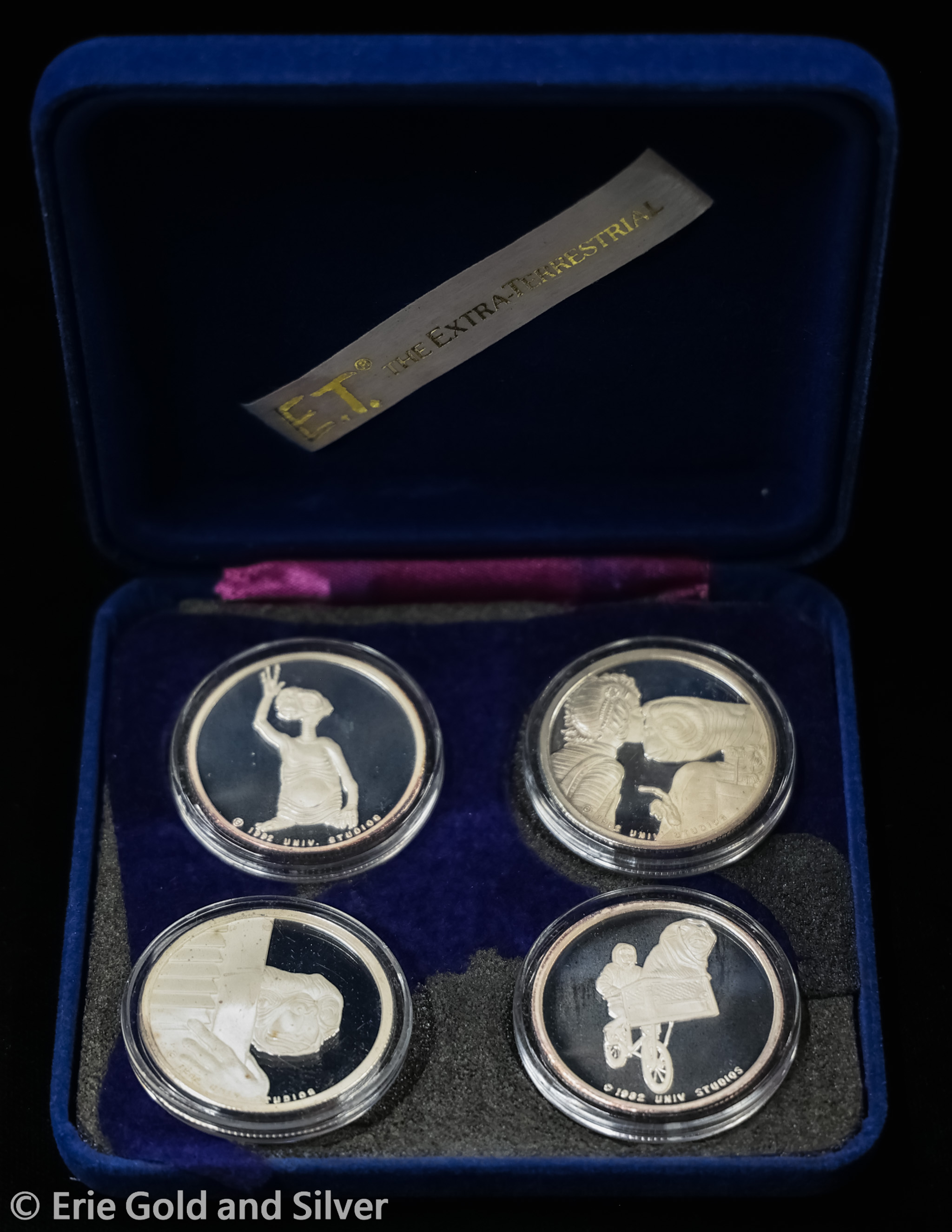 1982 Rarities Mint E.T. 1 oz Silver Rounds Set of 4 w/ Box & COA