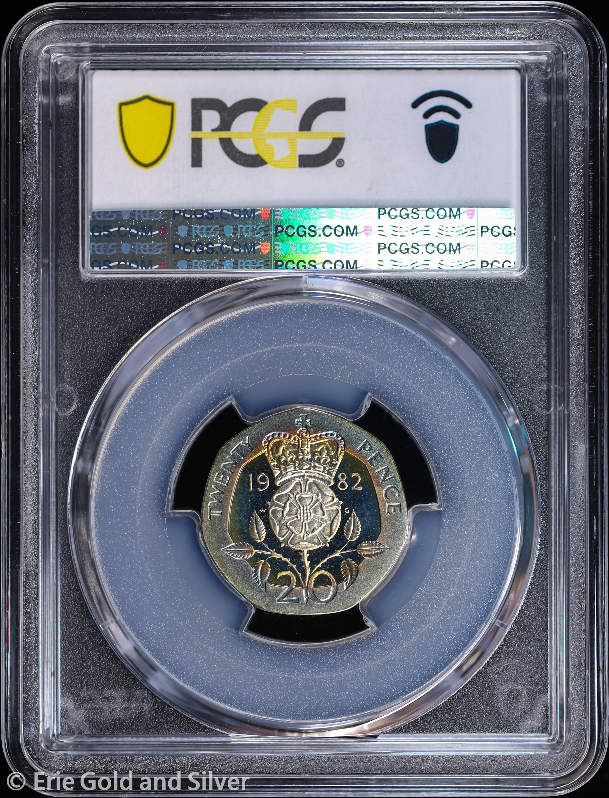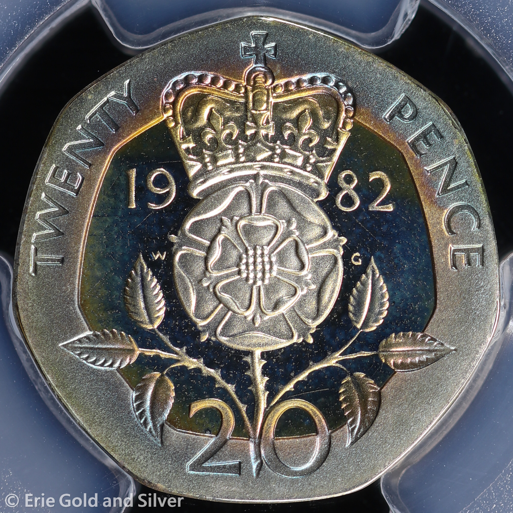 1982 UK (Great Britain) Proof Silver Piedfort 20 Pence Coin PCGS PR 68 DCAM | Rainbow Toning