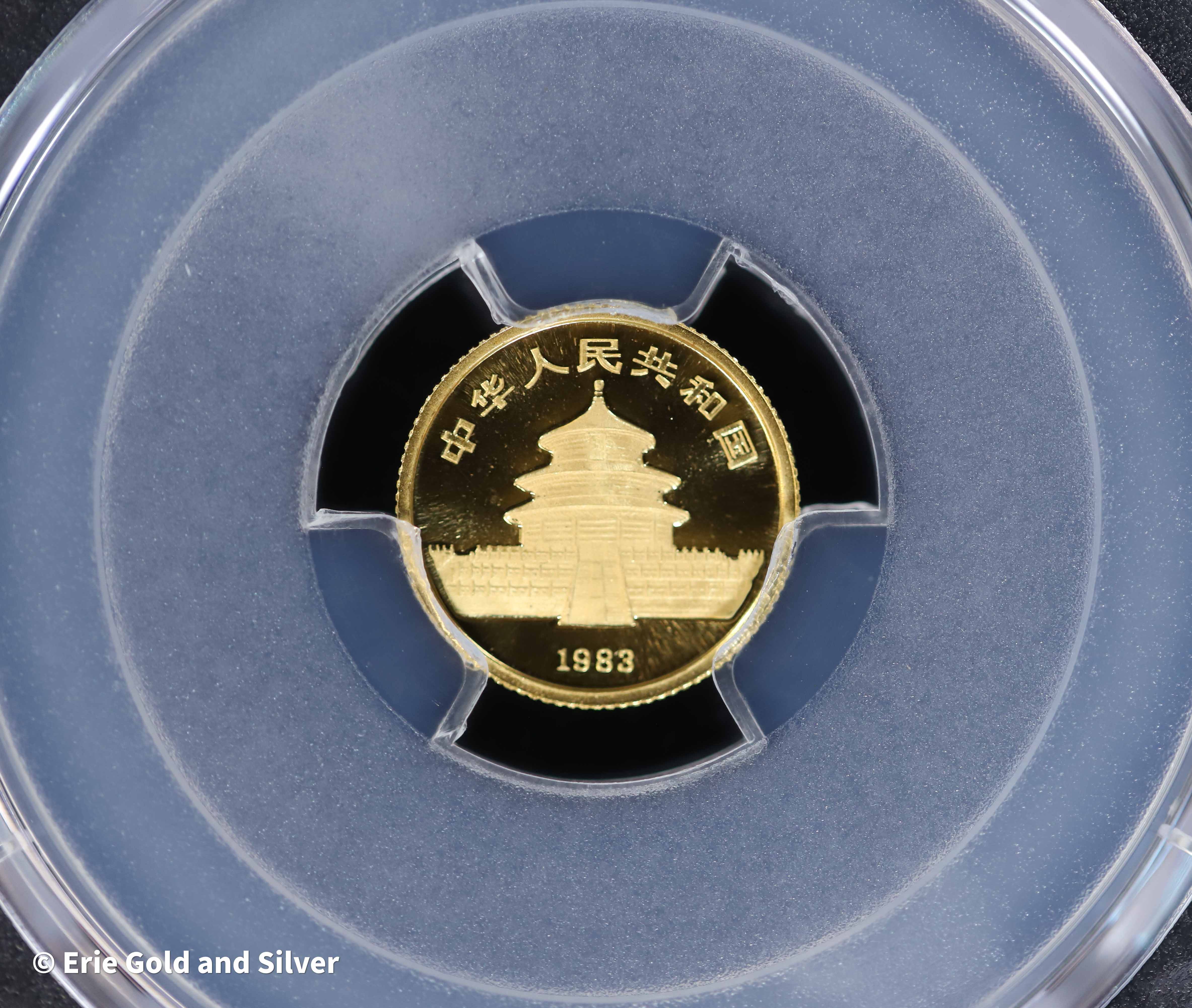 The 1983 China Panda 5 Yuan 1/20 oz Gold Coin is a highly collectible early issue from the beloved Panda series. Struck from 1/20 oz of .999 fine gold, this coin features the iconic panda design that changes annually, adding to its appeal among collectors. Certified MS 69 by Professional Coin Grading Service, this near-perfect example offers excellent detail, strong luster, and lasting value for both collectors and investors.