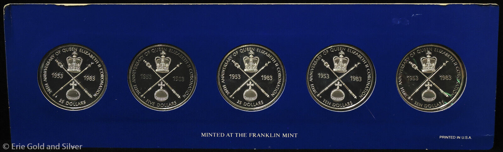 1983 Franklin Mint Queen Elizabeth 30th Anniv Silver Crown 5pc Set in OGP
