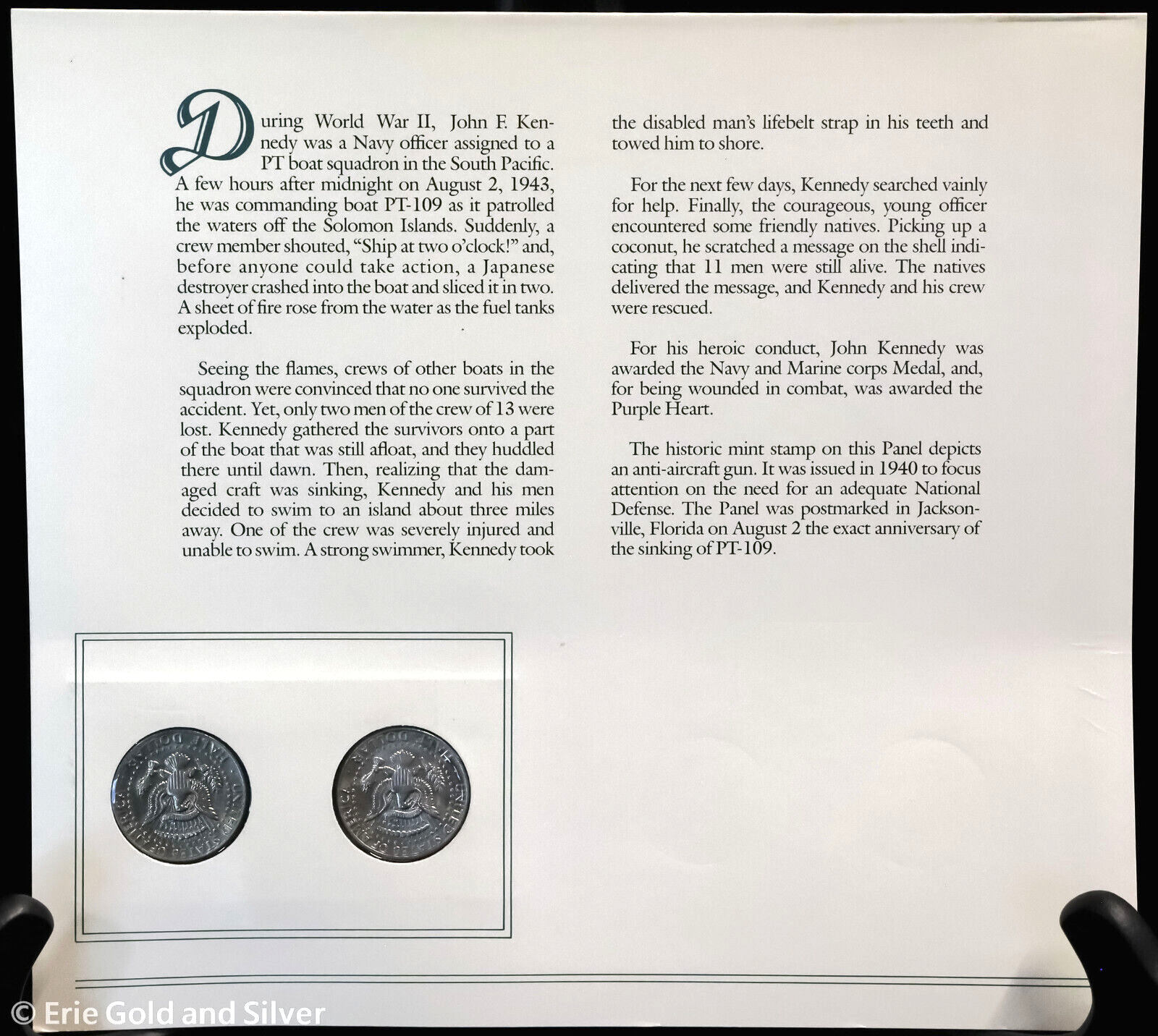 1983 PCS John F. Kennedy JFK PT-109 Panel Half Dollar Coins & Stamp Set