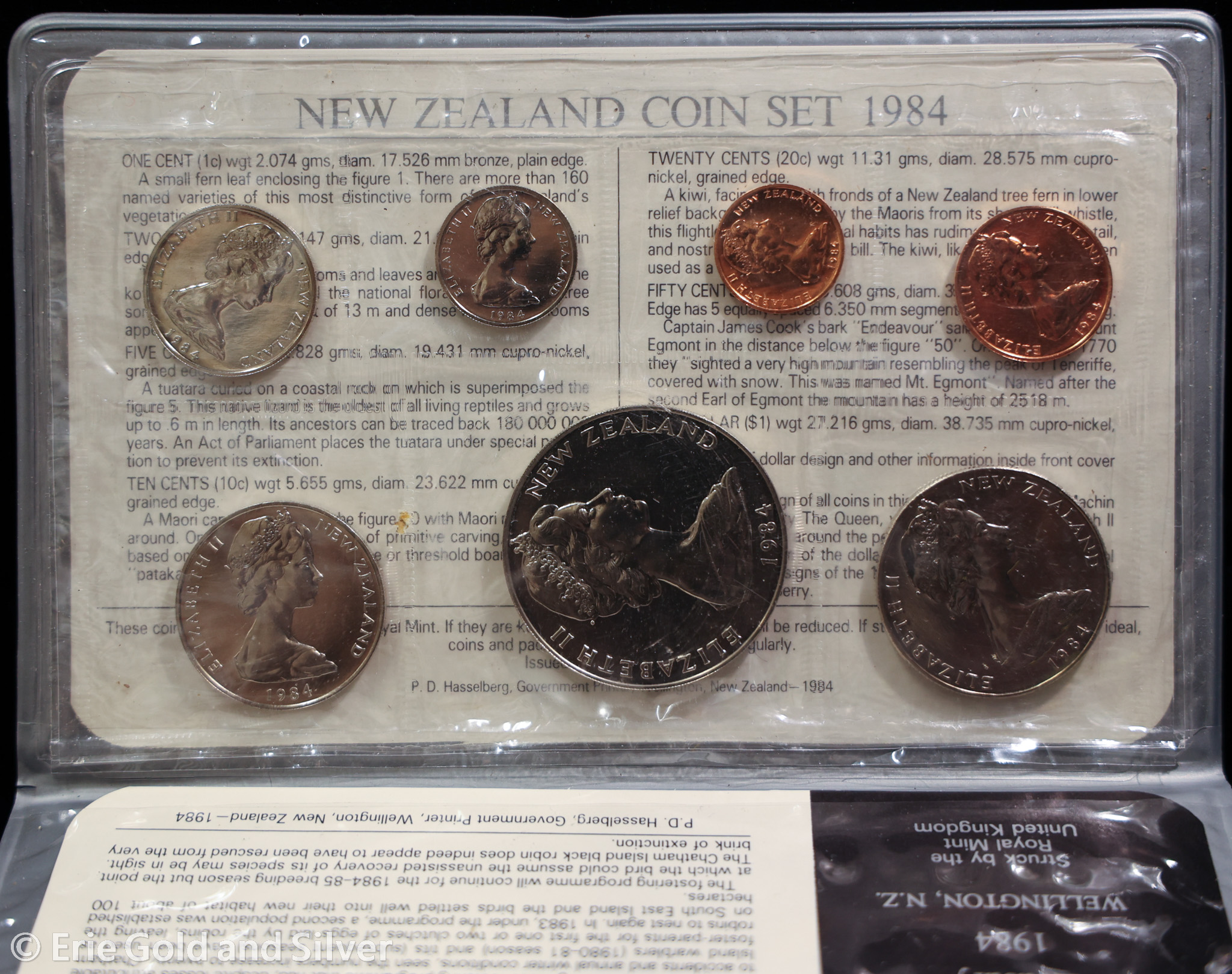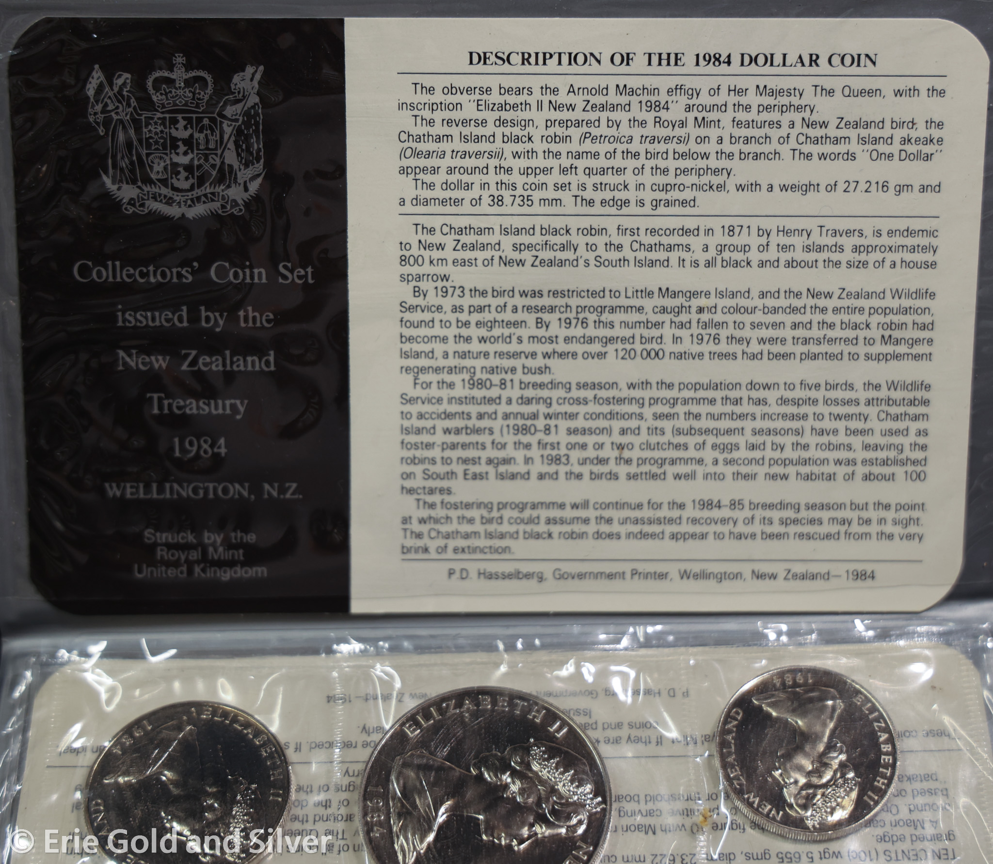 For sale is a 1984 New Zealand Coin Issue 7-Coin Set in OGP.