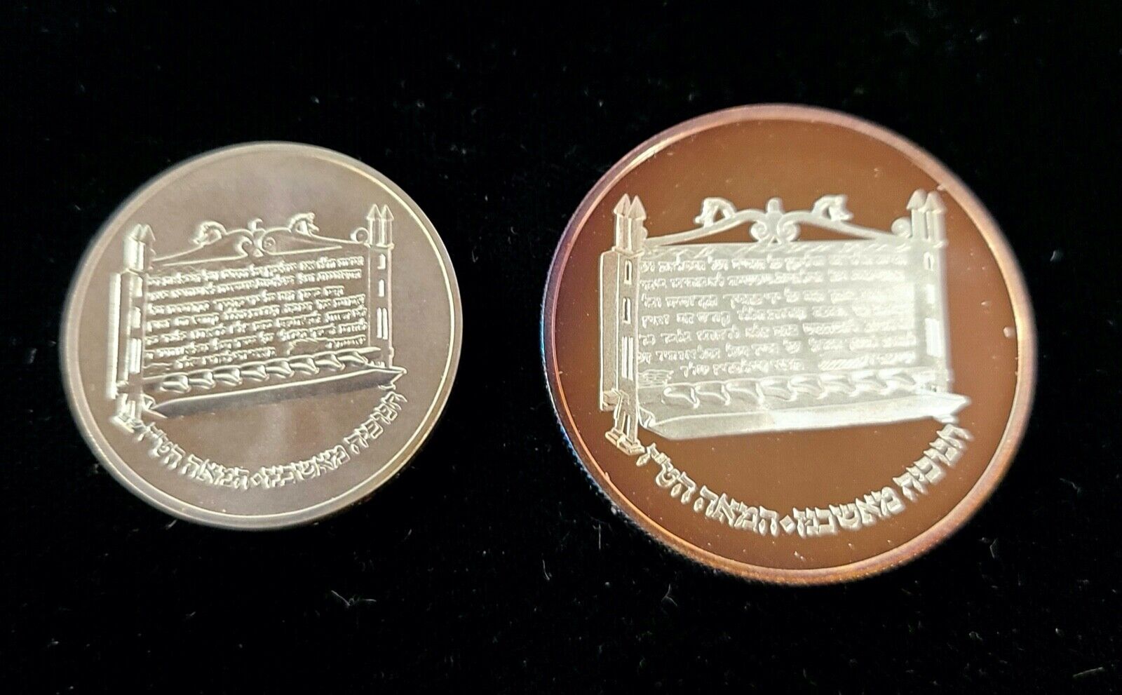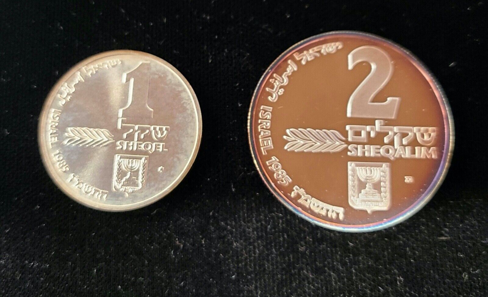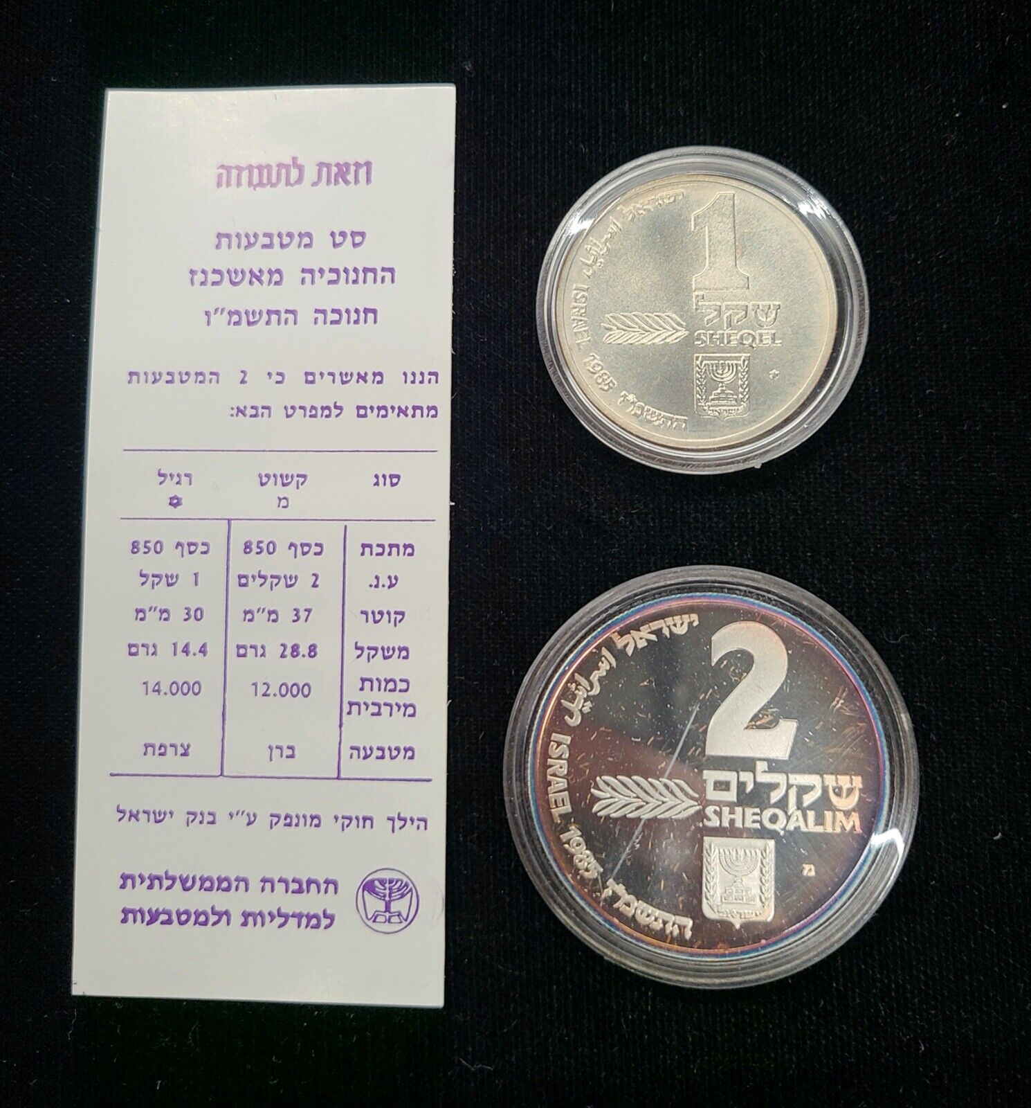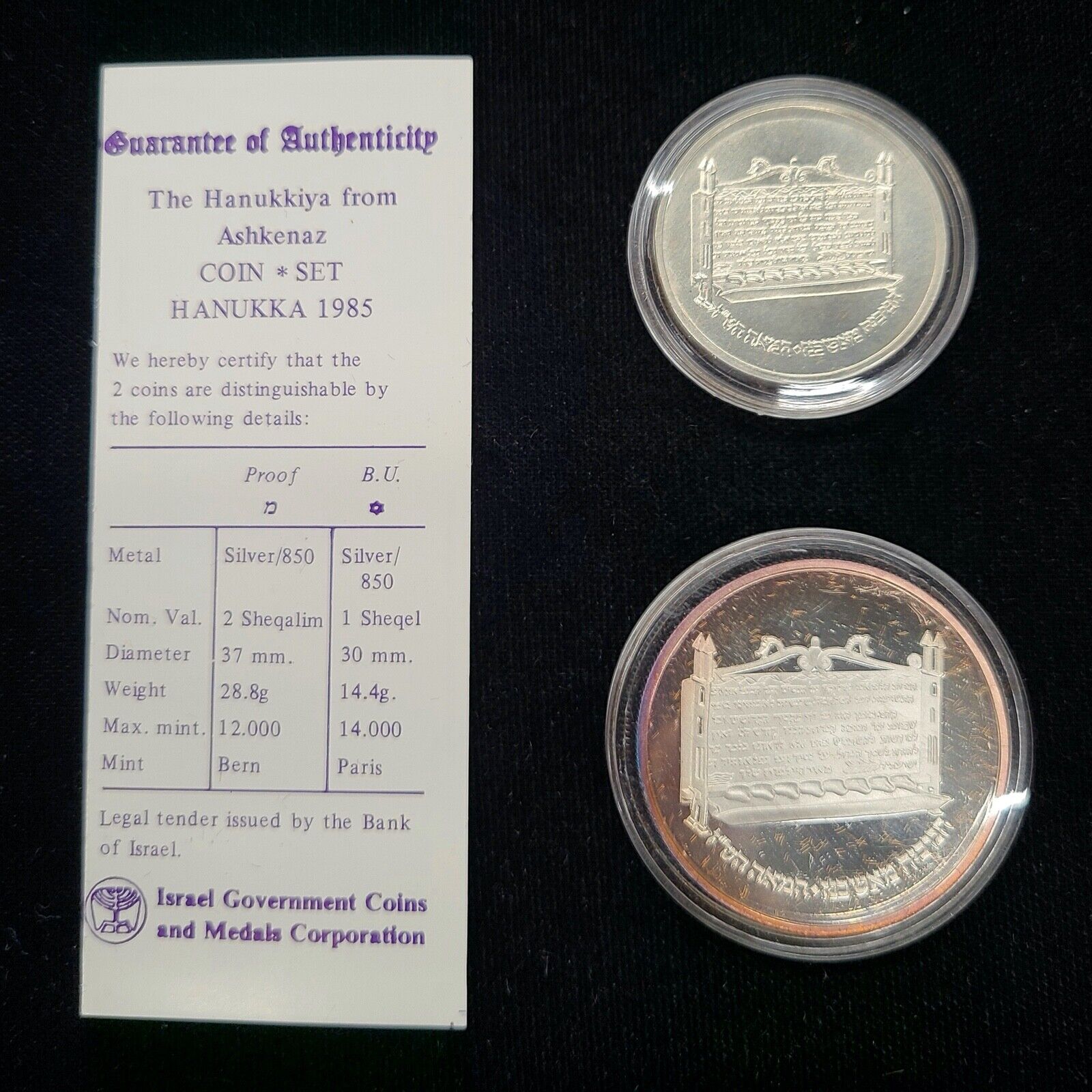 1985 Bank of Israel Hanukkah Ashkenaz 2 Coin Set Silver Proof BU Sheqel Sheqalim