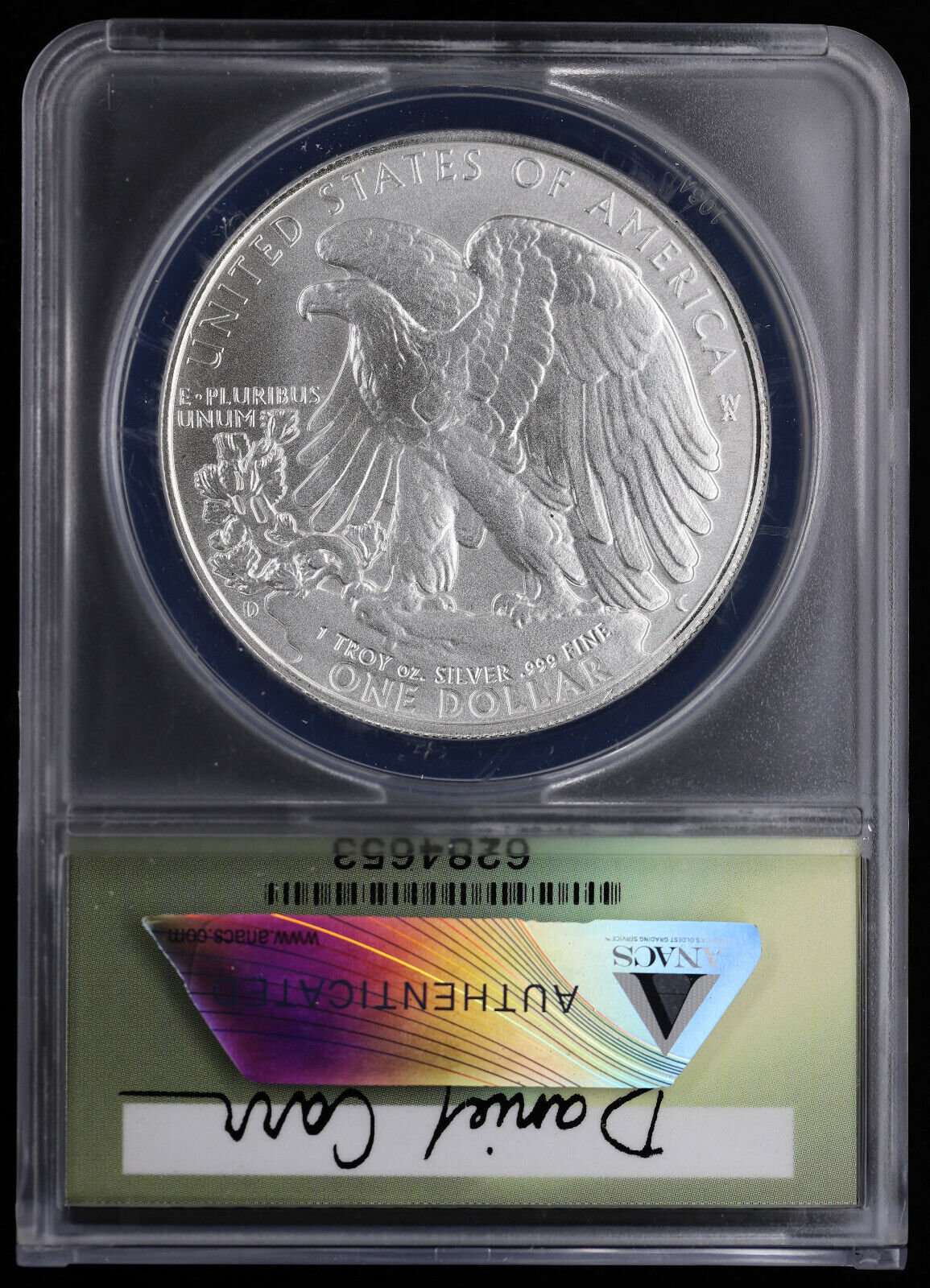 1985 D Token Dan Carr Walking Liberty $ O/S on USA Silver Eagle ANACS MS69