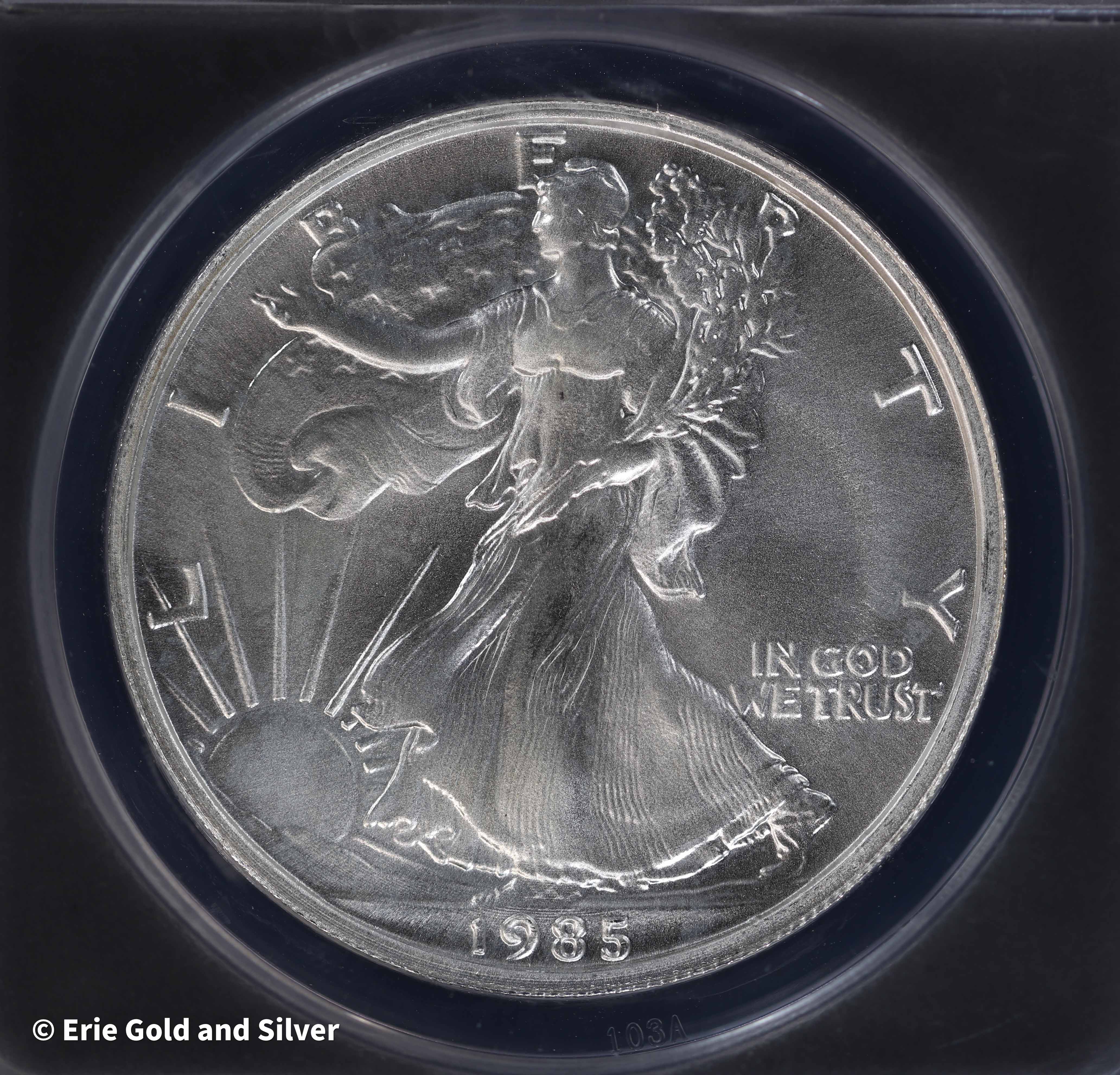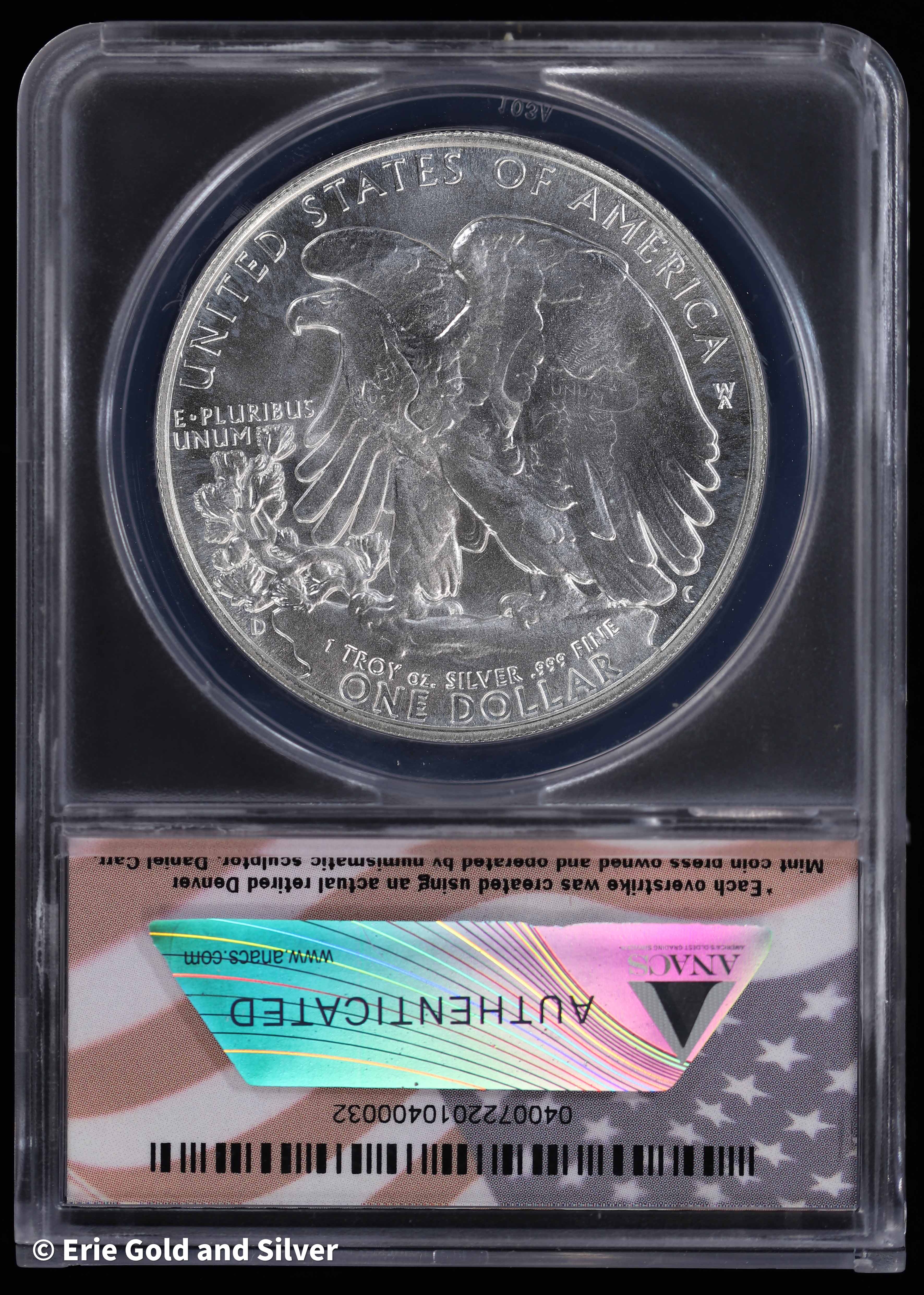 1985 Dan Carr 1 oz Overstruck Silver Eagle ANACS MS 67