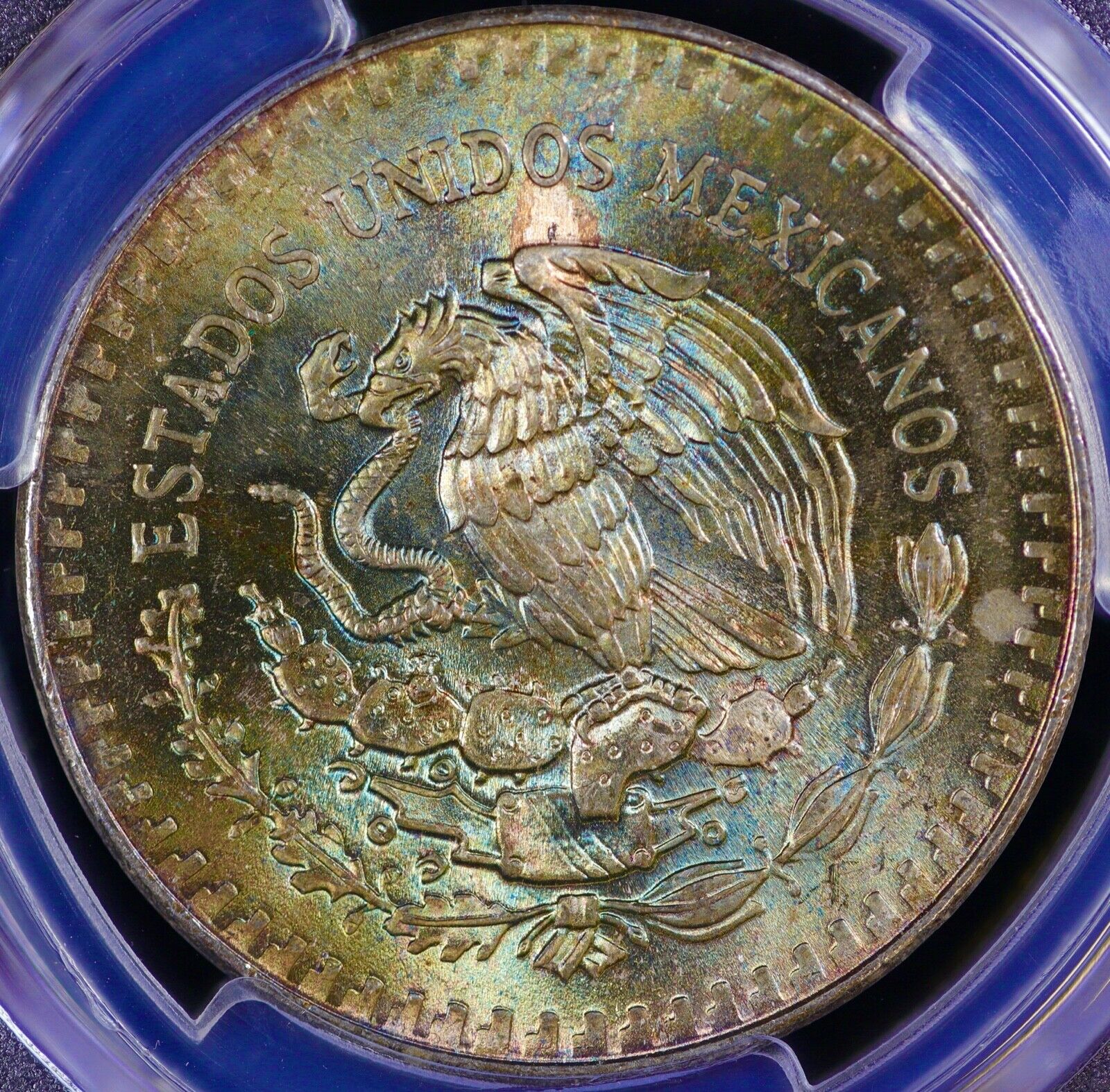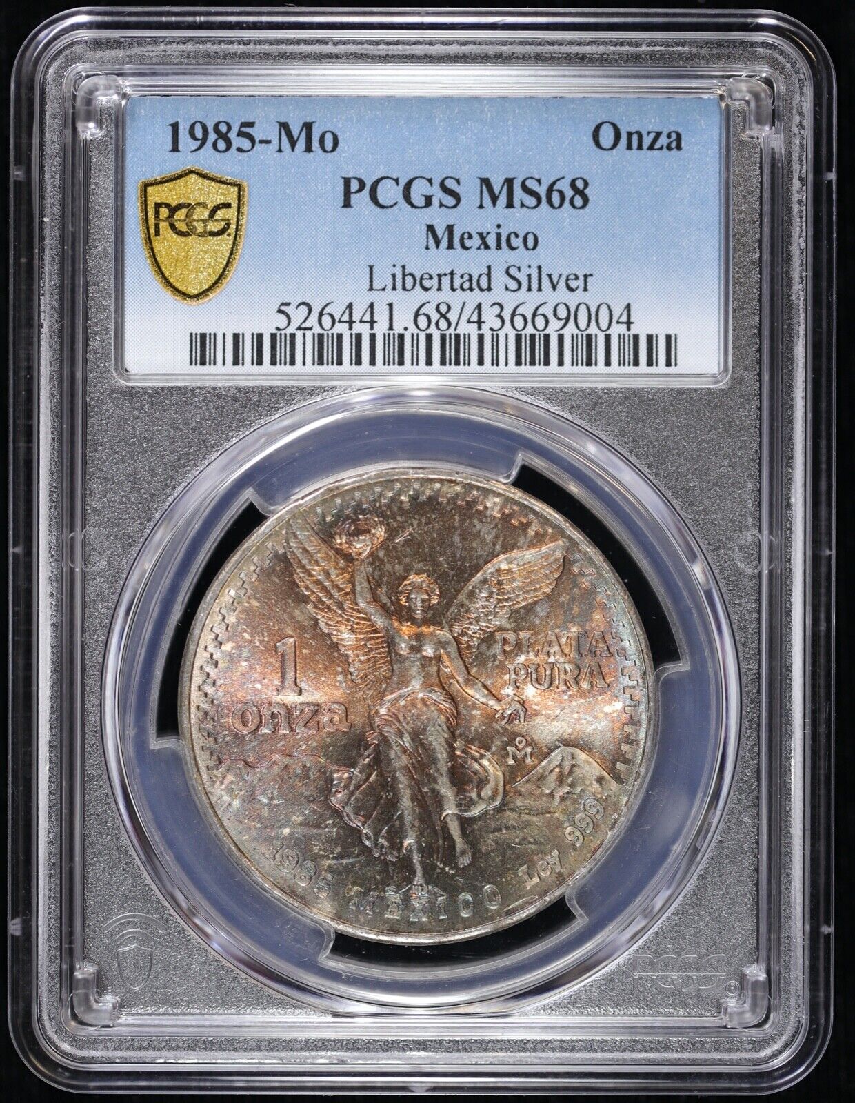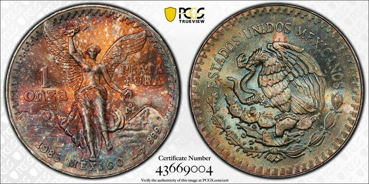 1985-Mo Mexico 1 oz Silver Libertad Onza PCGS MS68 Monster Toned Color Toning