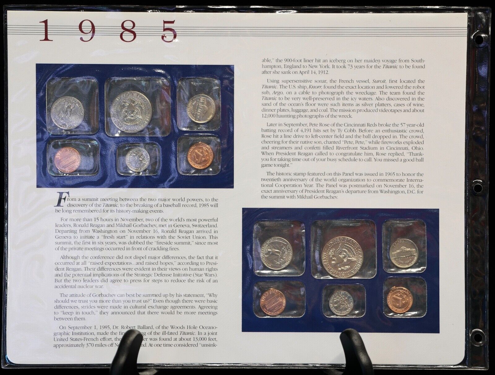1985 P & D Uncirculated Mint Set Postal Commemorative Society Coins & Stamps