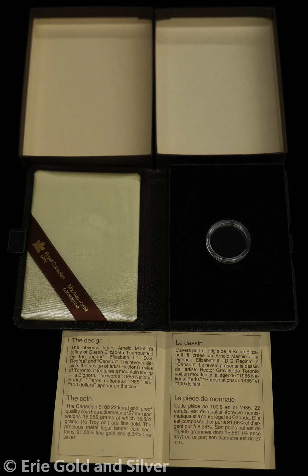1985 Roya Canadian Mint $100 Gold Coin Proof Empty Brown Leather Box w/ COA