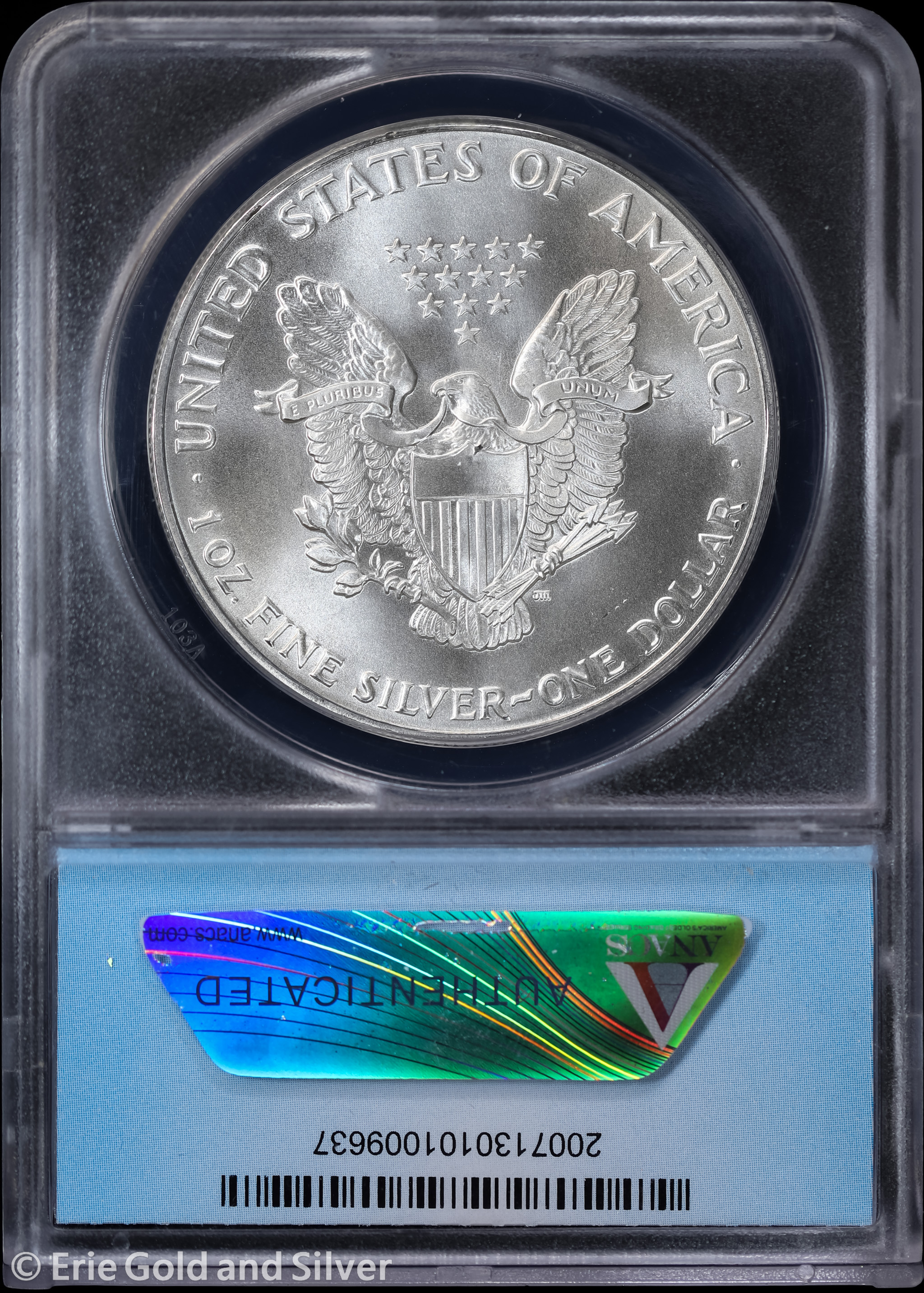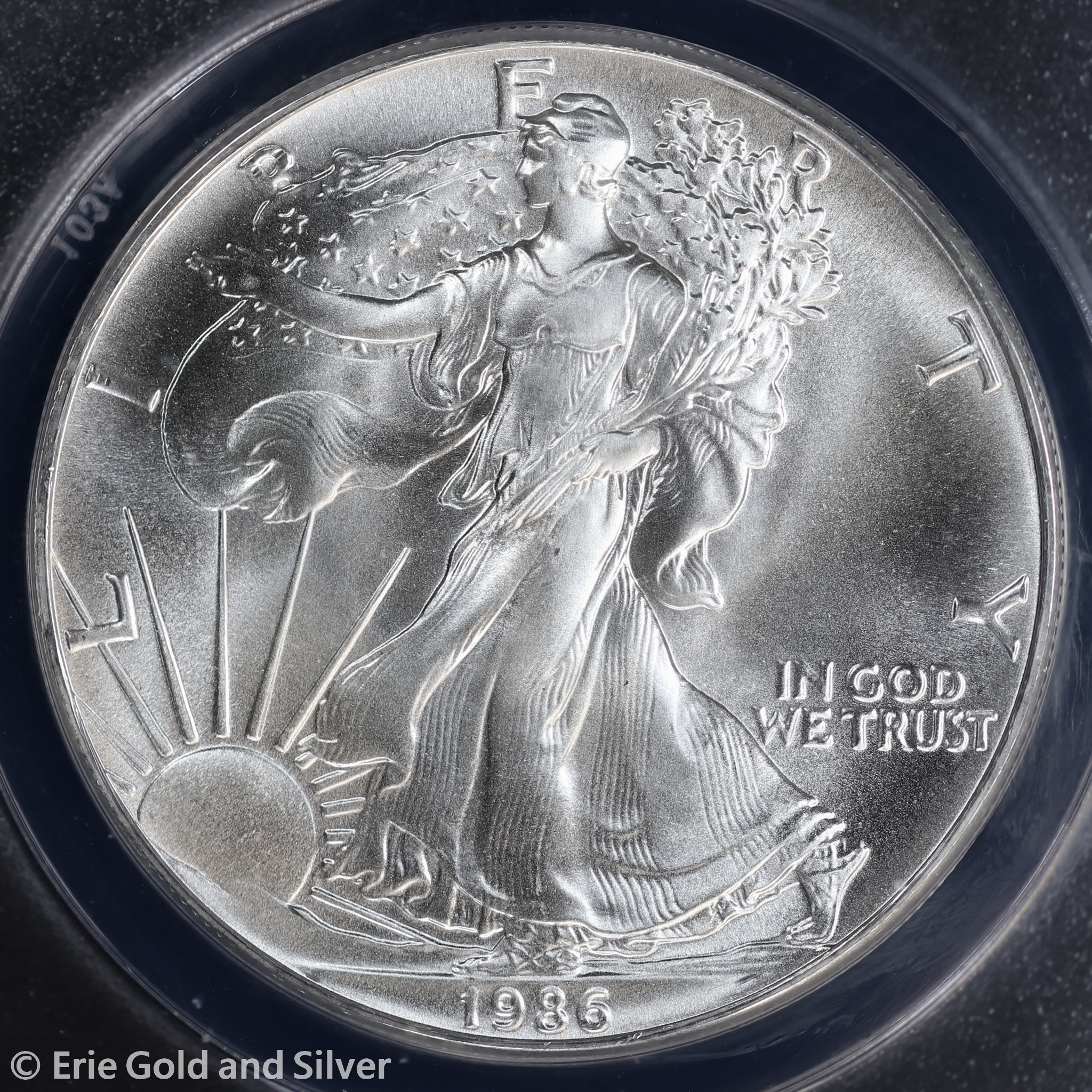 For sale is a 1986 American Silver Eagle. Certified / graded by ANACS at MS 70.