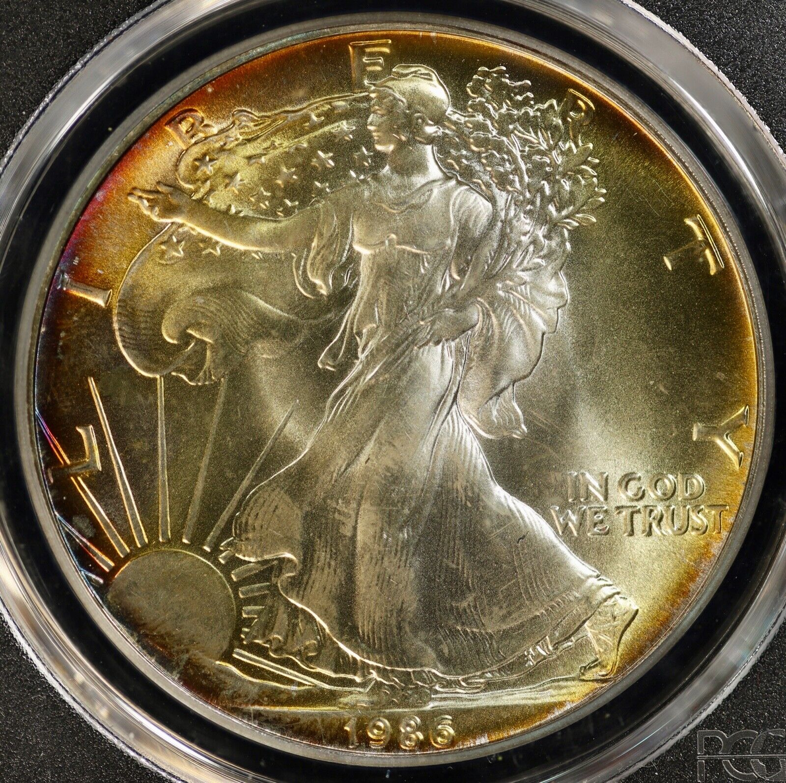 1986 $1 American Silver Eagle PCGS MS 66 Toned Uncirculated UNC BU ASE Colorful