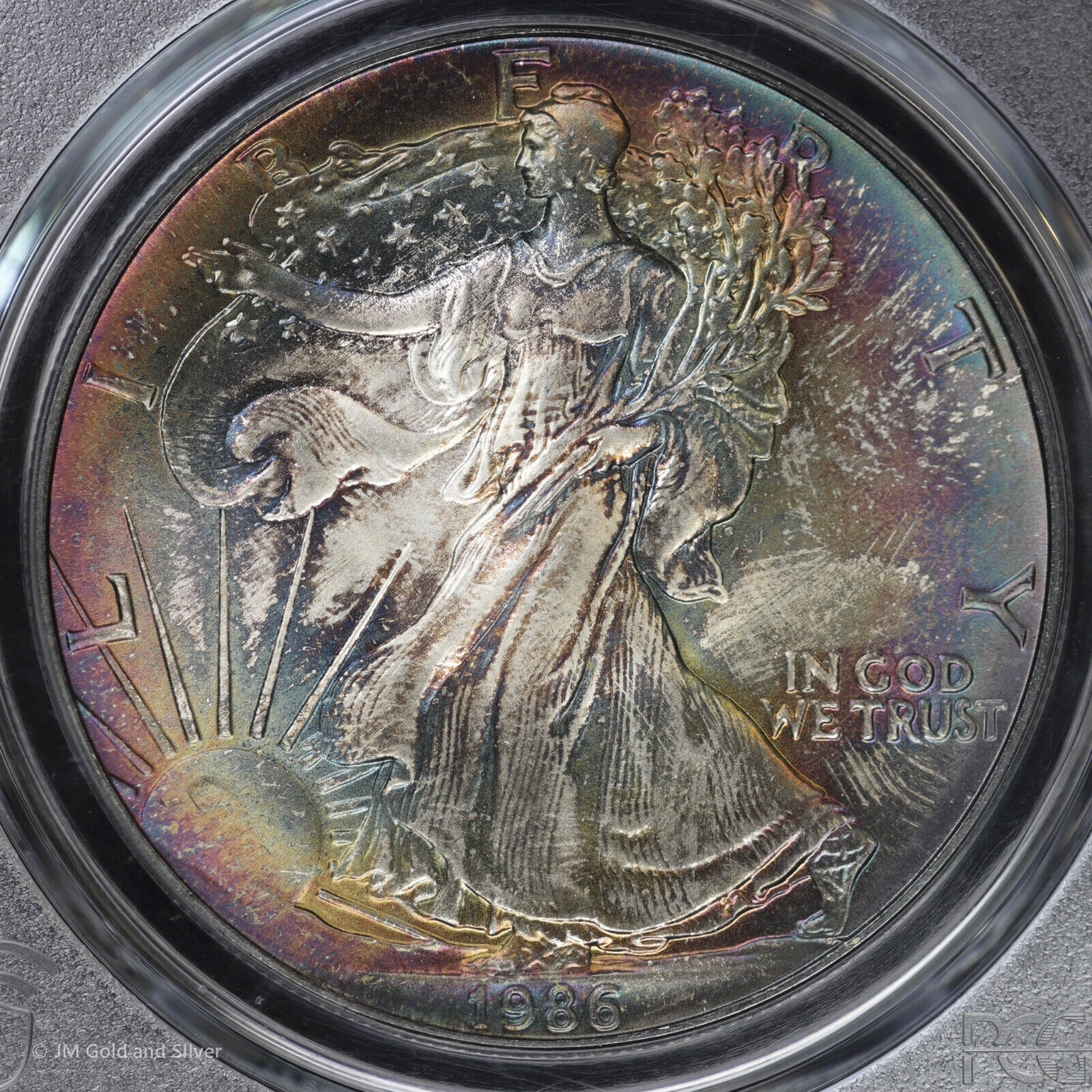 1986 $1 American Silver Eagle PCGS MS 68 | Color Toning Uncirculated BU UNC