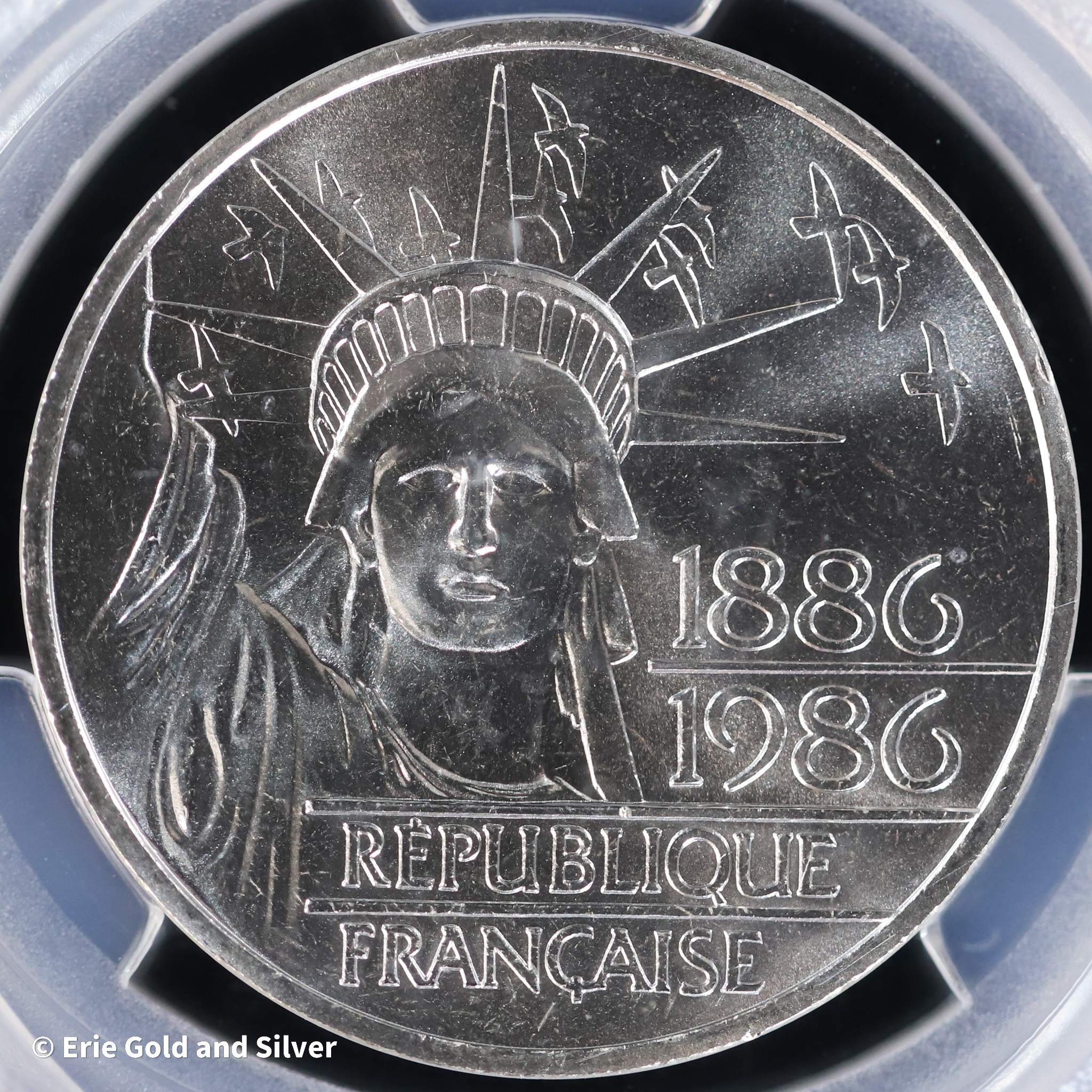 1986 France Piefort Silver Statue of Liberty Coin PCGS SP 65 | KM-P972