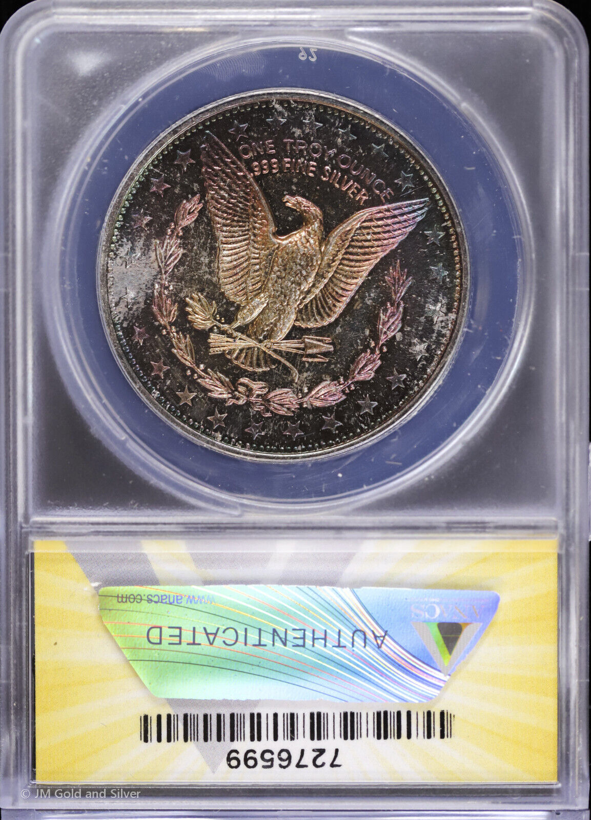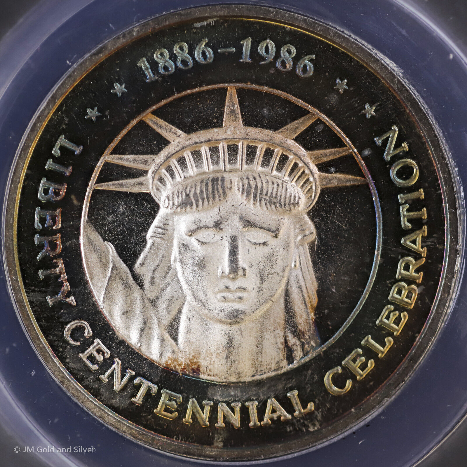 1986 Liberty Centennial 1 oz .999 Silver Medal ANACS MS 67 | Rainbow Toned