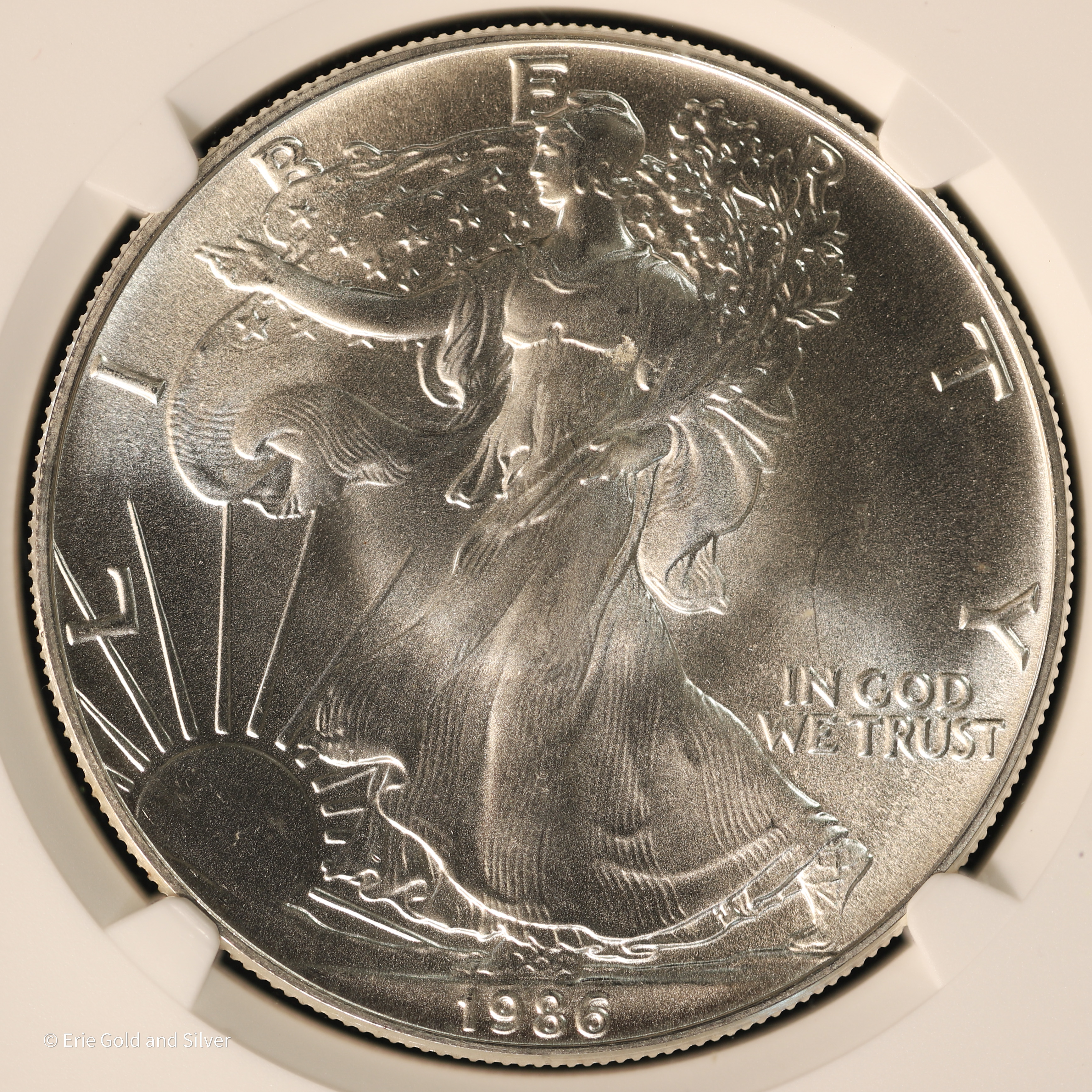For sale is a 1986-(S) 1 oz $1 Silver Eagle, Struck at San Francisco Mint and signed by John Mercanti, the 12th Chief Engraver. Certified / graded by NGC at MS 69.