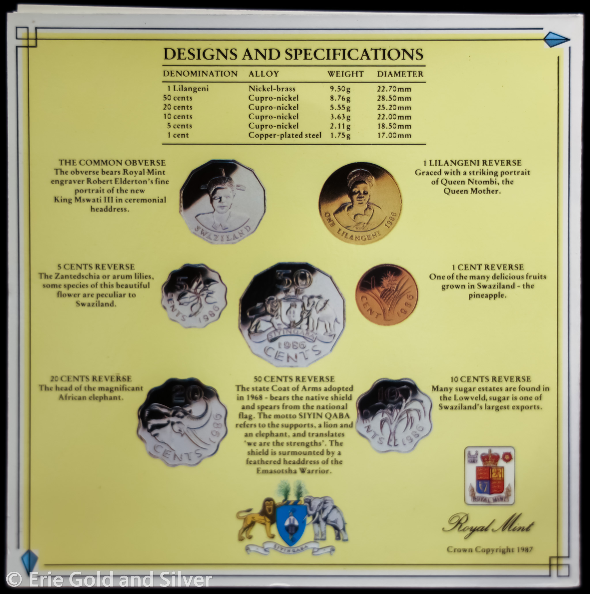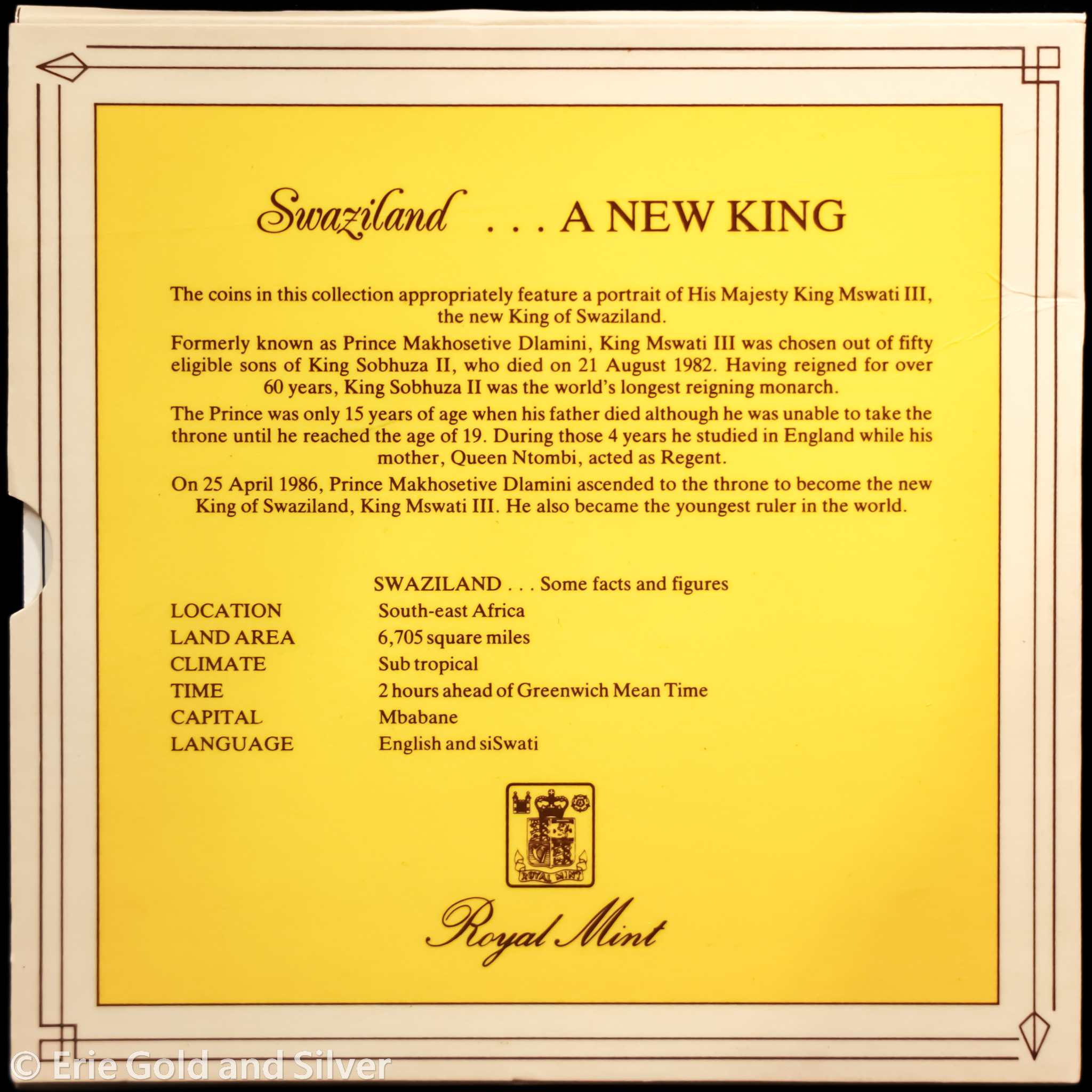 For sale is a 1986 Swaziland Brilliant Uncirculated Coin Collection in OGP.