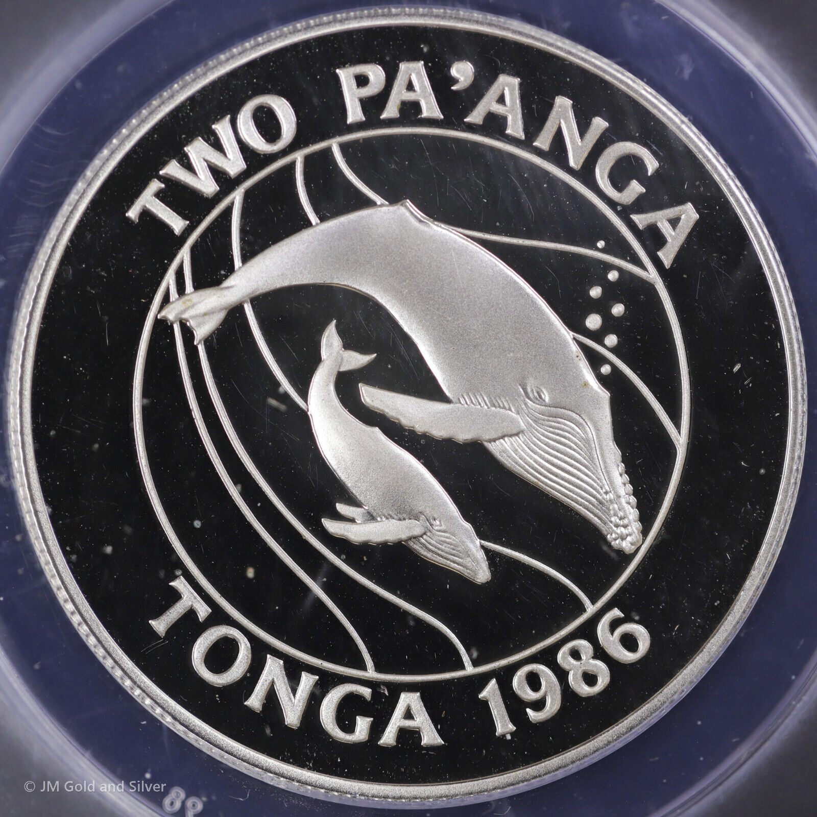 1986 Tonga 2 Pa'anga Proof Silver Humpback Whales ANACS PF 68 DCAM