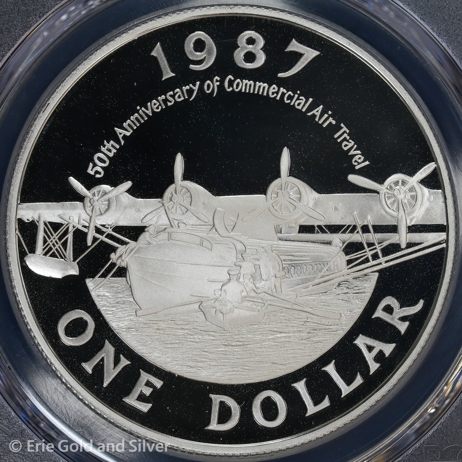 1987 $1 1 oz Silver Proof Bermuda Aviation PCGS PR 69 DCAM