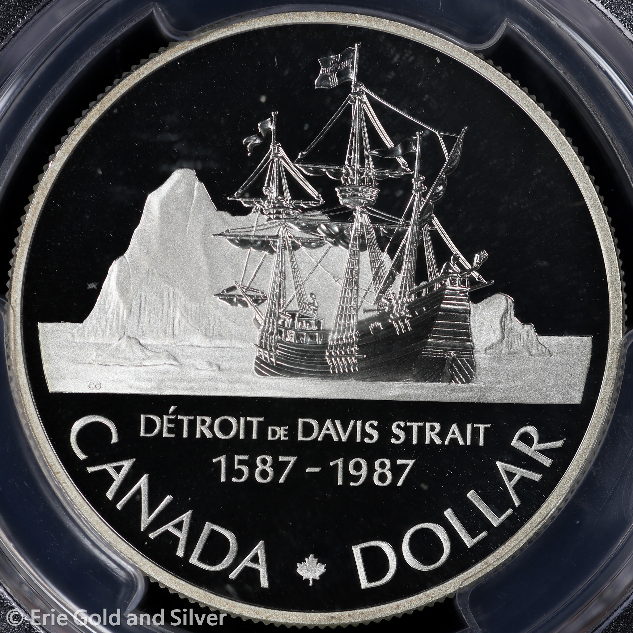 For sale is a 1987 $1 Canada Proof John Davis Commemorative Silver Dollar. Certified / graded by PCGS at PR 69 DCAM.