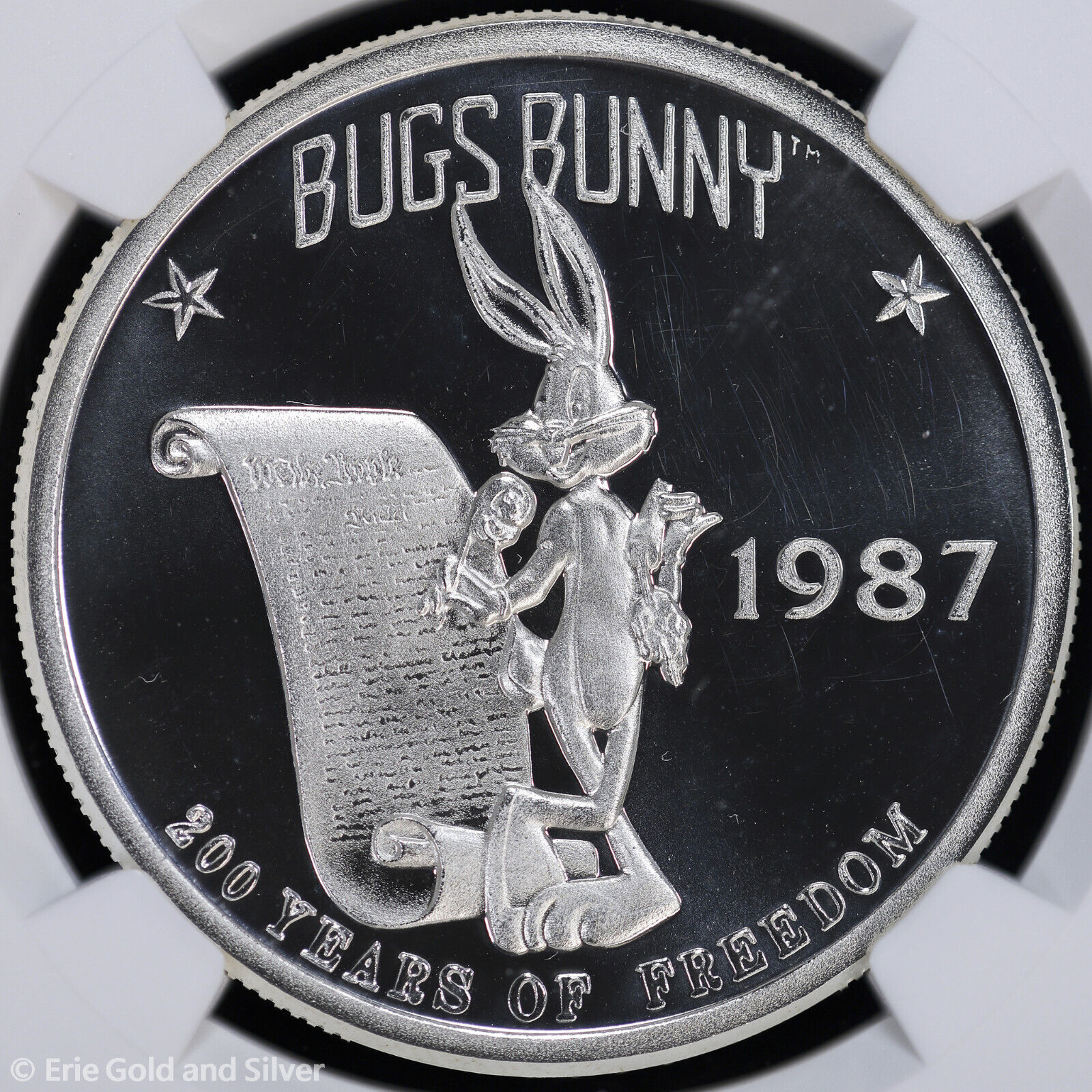 1987 1 oz Silver Proof Looney Tunes Bugs Bunny & Constitution NGC PF 64 UC