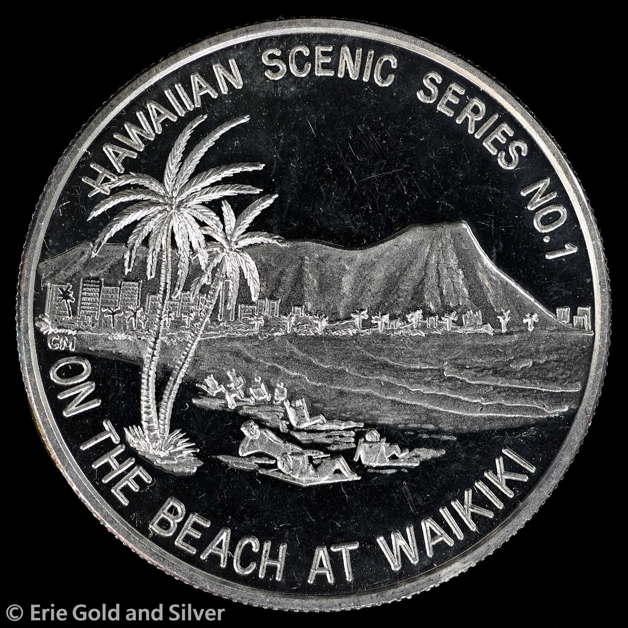 For sale is a 1987 Aloha From Hawaii 1 oz Silver Enameled Round.