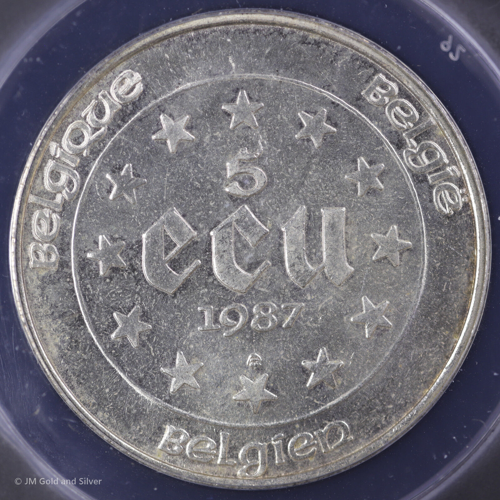 1987 Belgium Silver Charles V 5 ECU ANACS MS 64 | 30th Anniversary Treaties of Rome