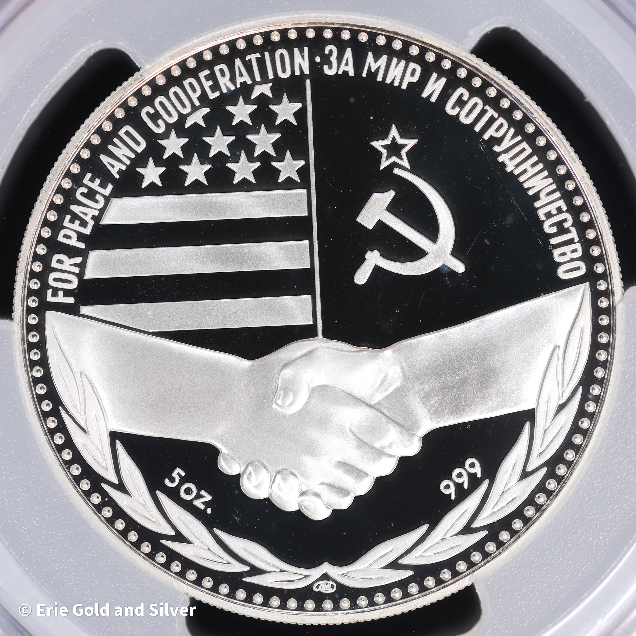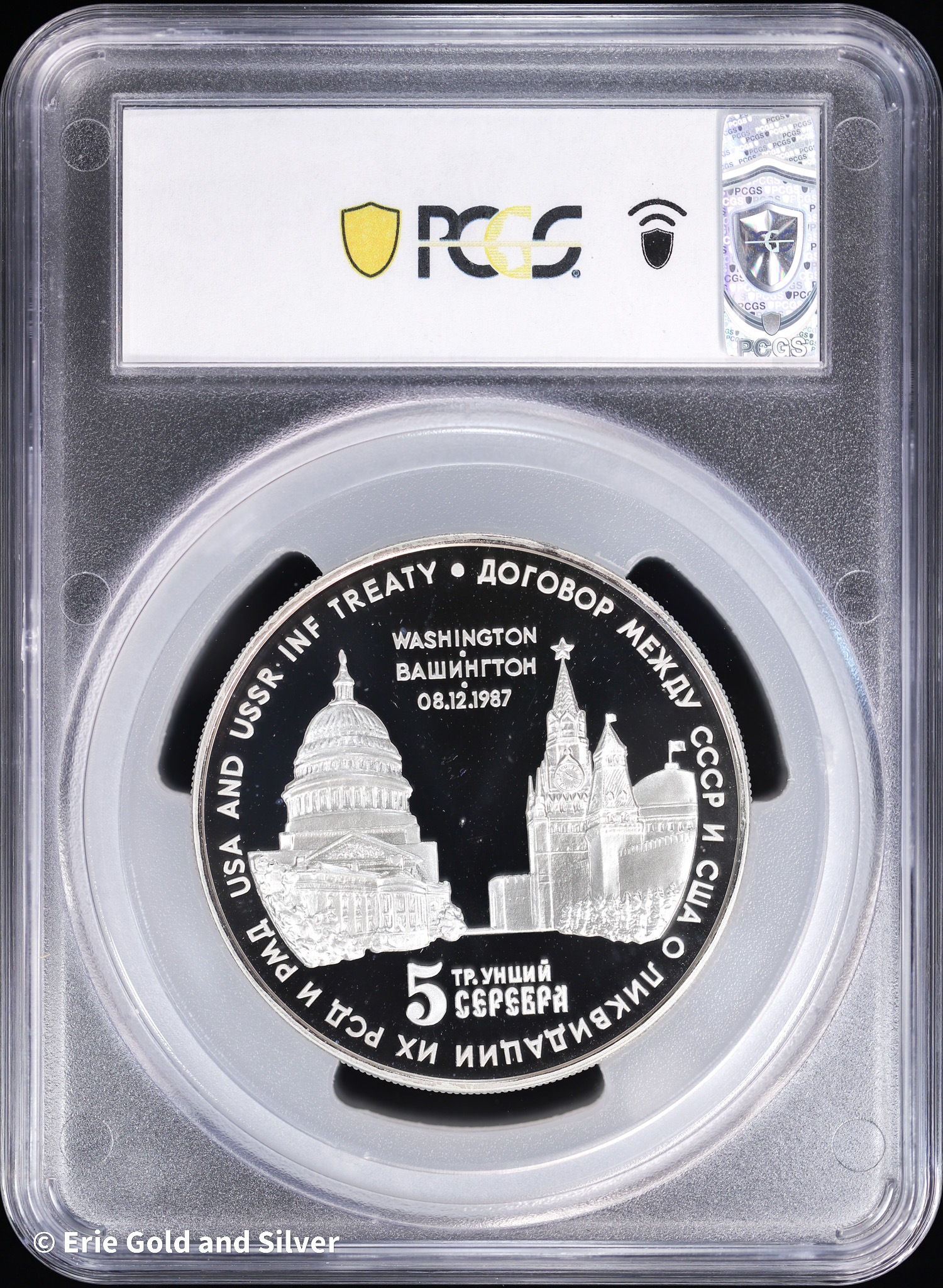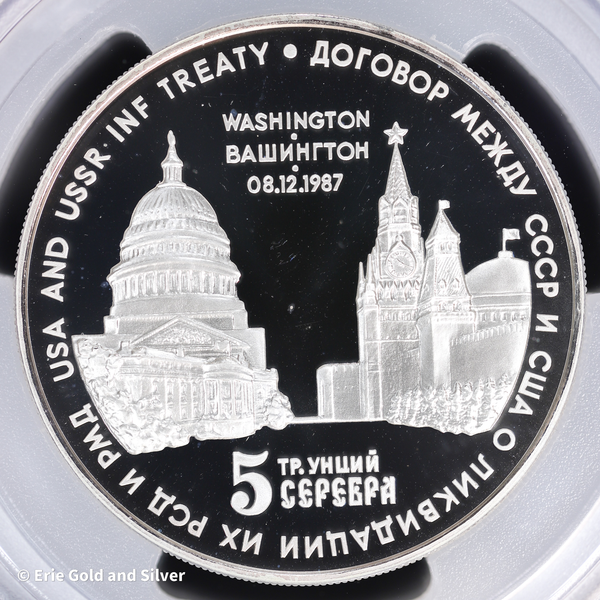 1987 LMD Russia USA-USSR INF Treaty Peace and Cooperation 5 oz Silver Proof Coin PCGS PR 69 DCAM | X#MB2