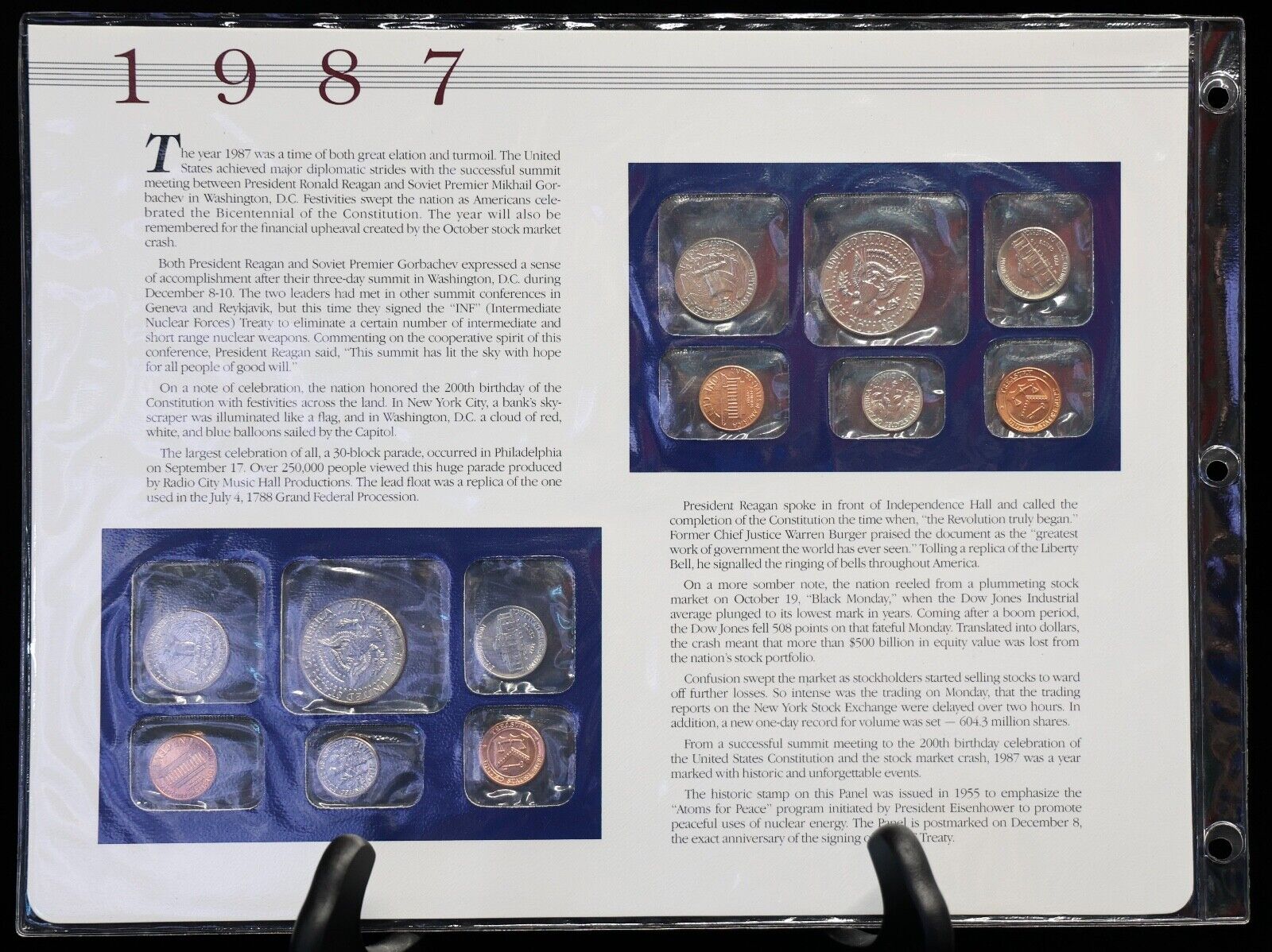 1987 P & D Uncirculated Mint Set Postal Commemorative Society Coins & Stamps