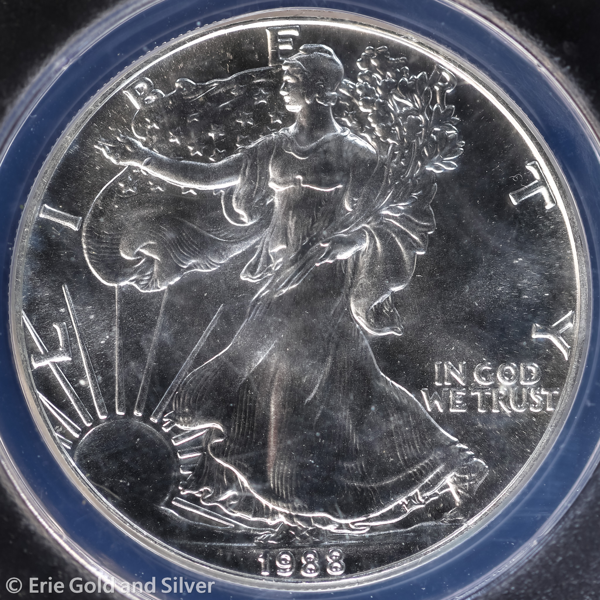 For sale is a 1988 American Silver Eagle. Certified / graded by ANACS at MS 70.