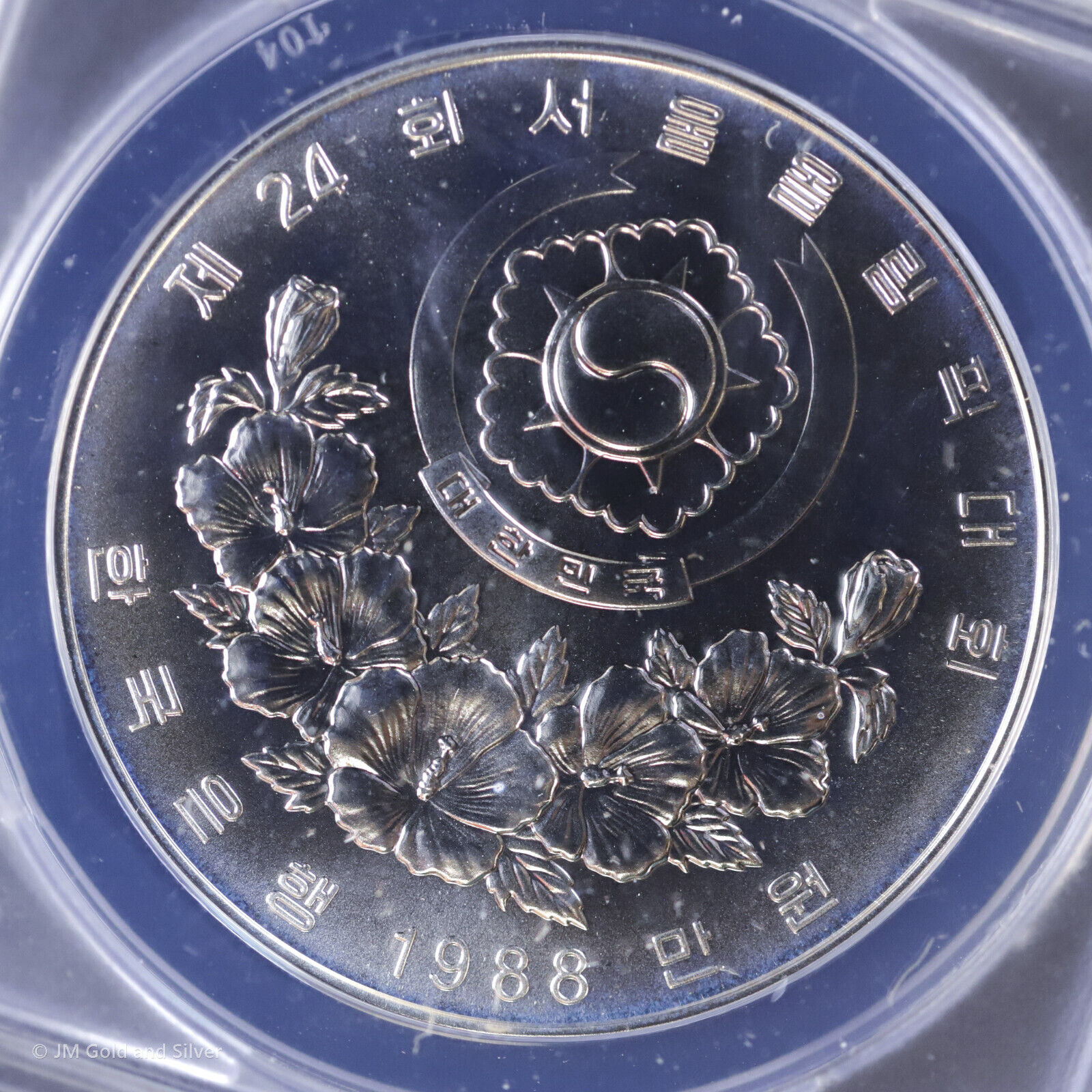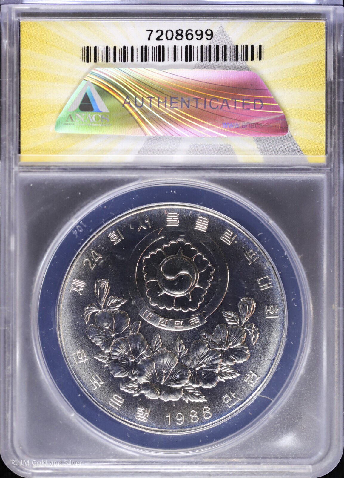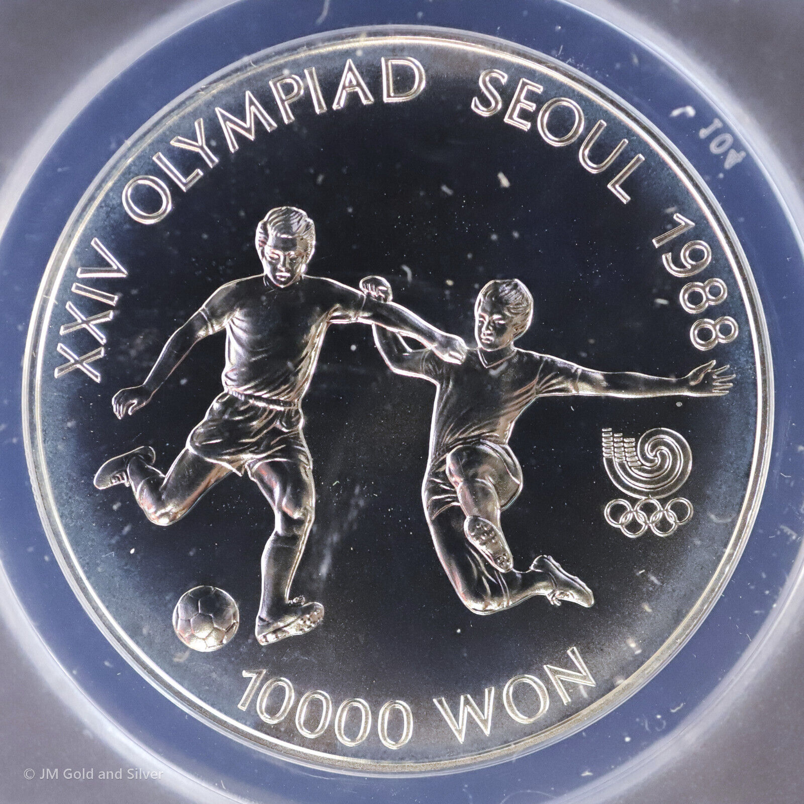 1988 Seoul South Korea Silver 10000 Won Olympic Soccer ANACS MS 68 BU Unc
