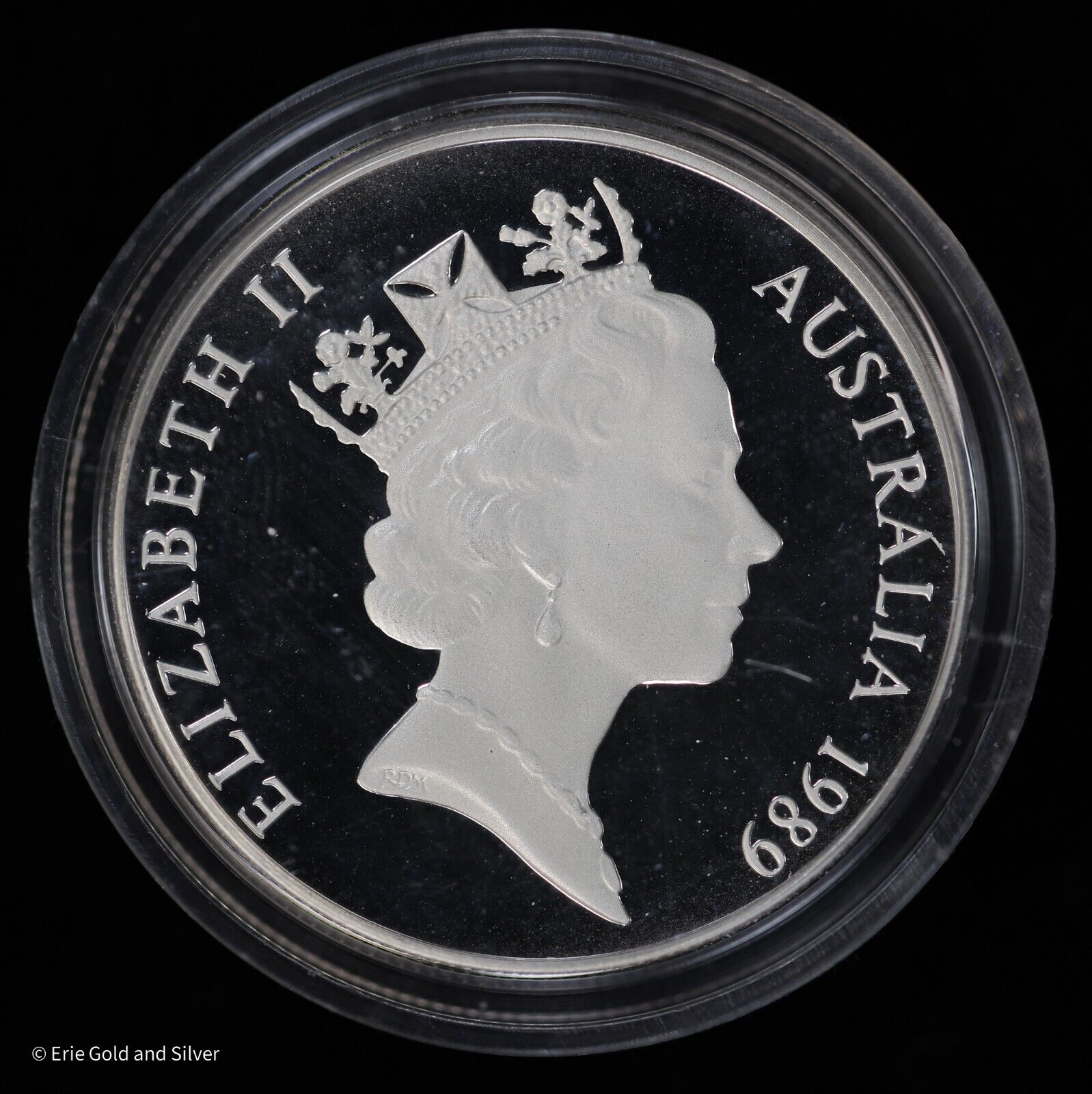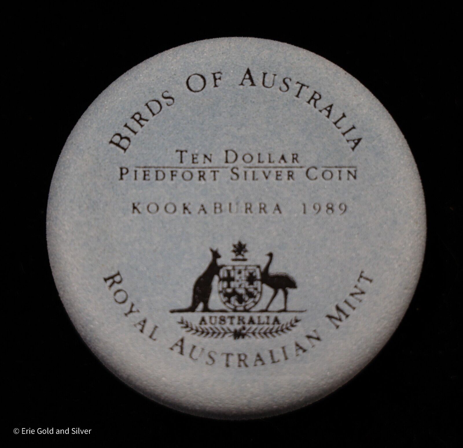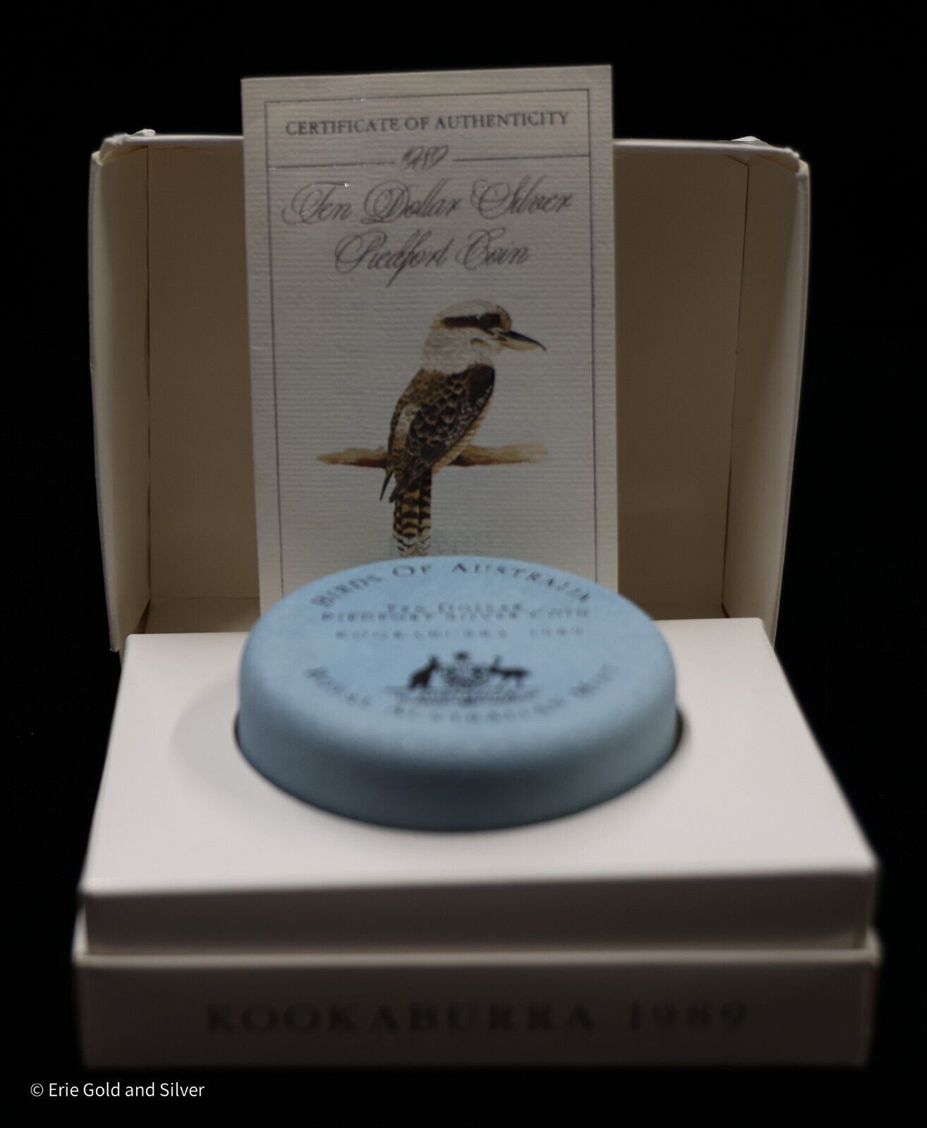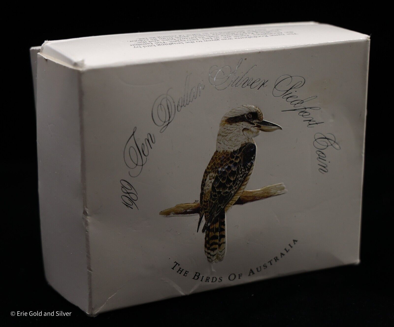 1989 Australian Kookaburra $10 Piedfort 40 Gram Silver Coin in Box w/ COA
