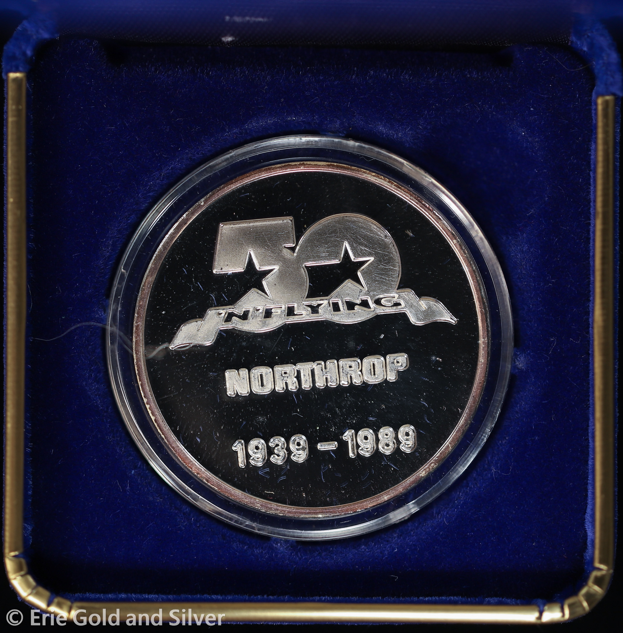 For sale is a 1989 Northrop Aviation 50th Anniversary 1 oz Silver Round w/ Box & COA.