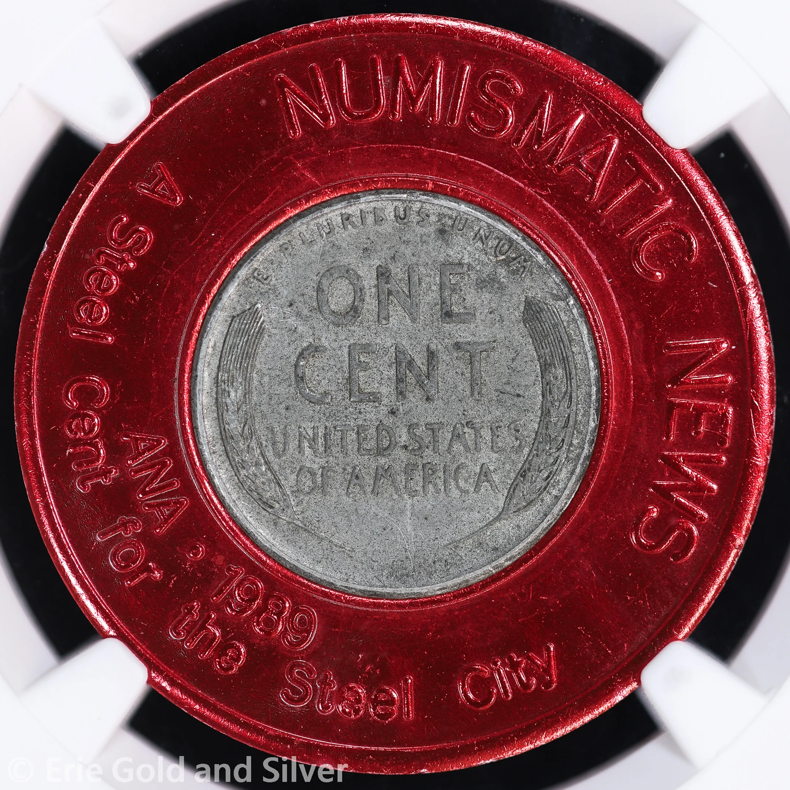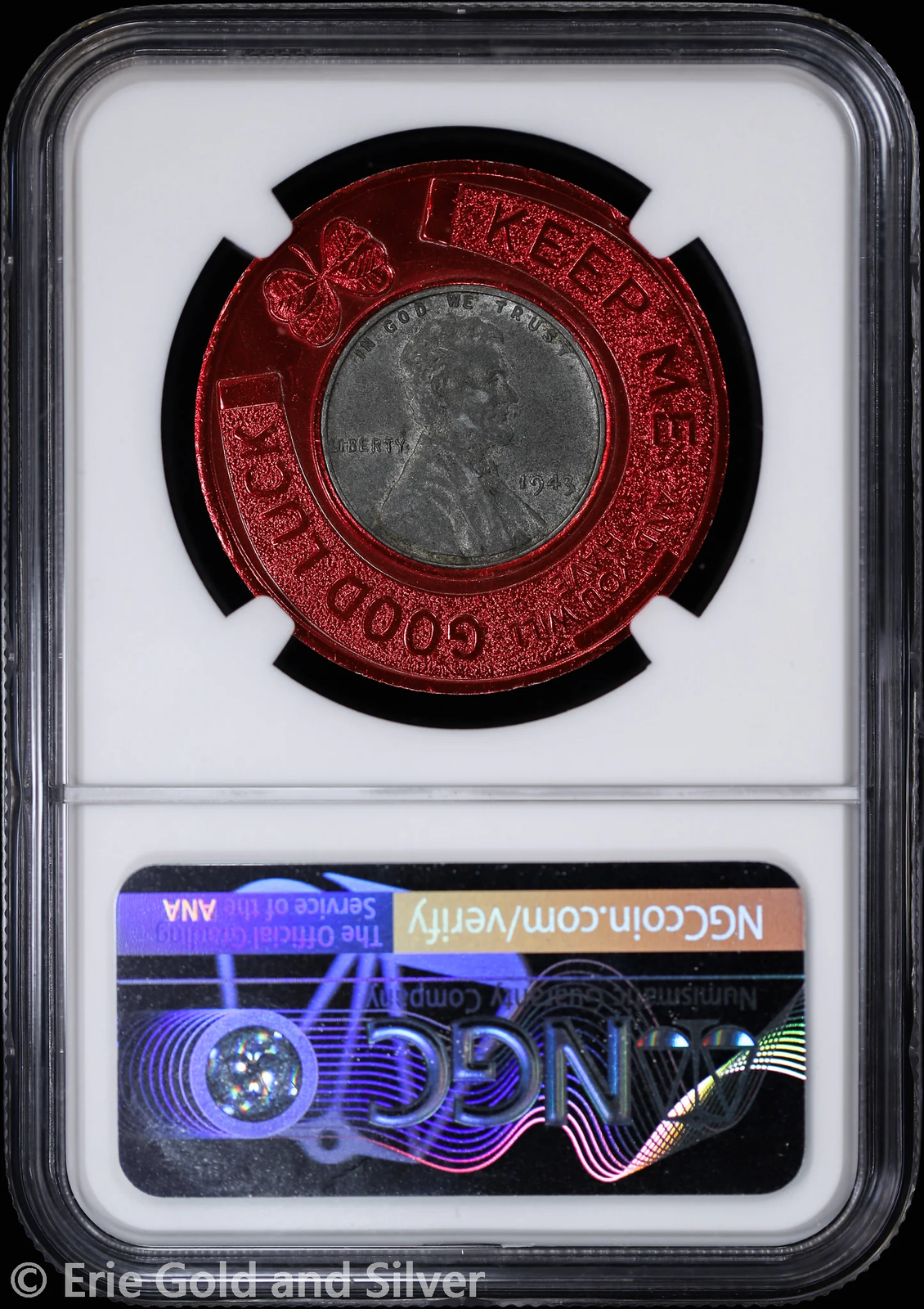 1989 Numismatic News ANA Pittsburgh Red Anodized Encased 1943 Cent NGC MS 66