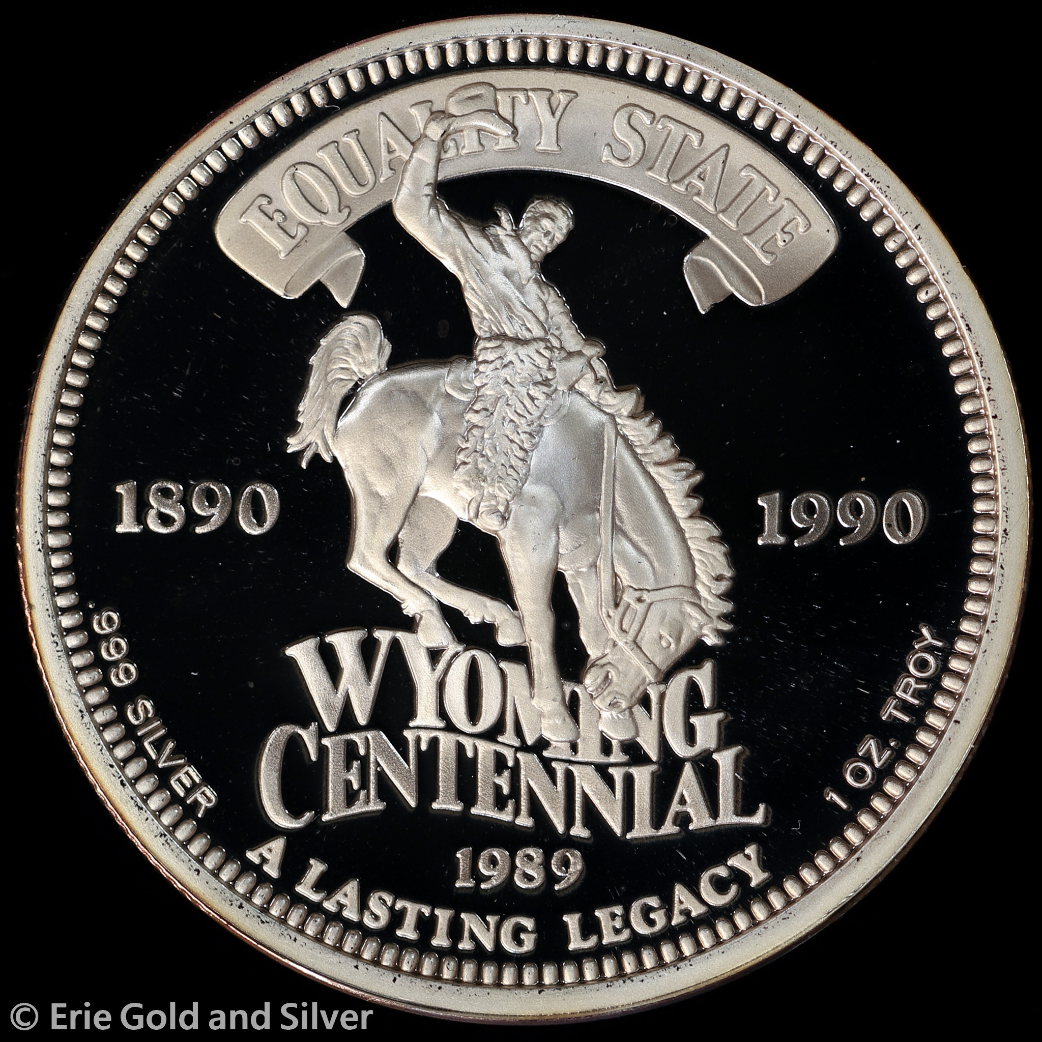 For sale is a 1989 Wyoming State Centennial 1 oz Silver Medal.
