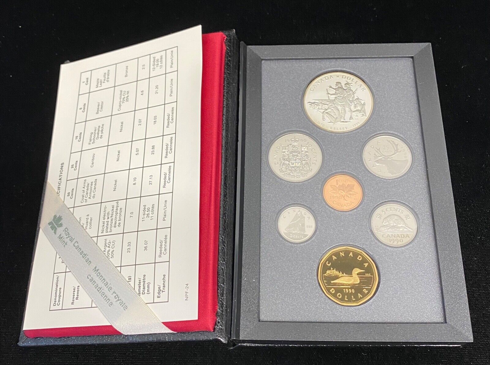 1990 Canada Double Dollar Proof Set Kelsey Natives Silver $1 w/ Box and COA