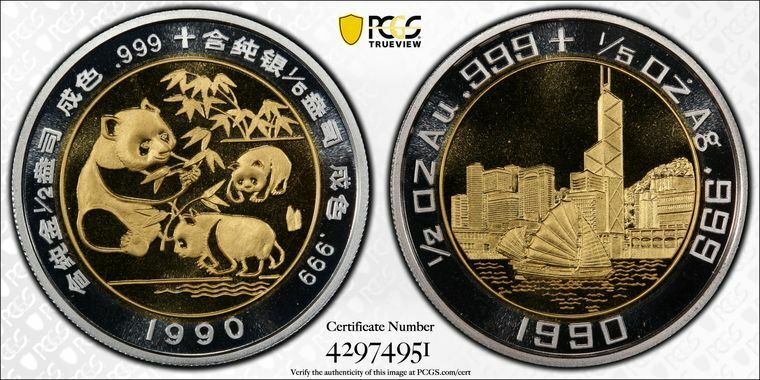 1990 China 7/10 oz Hong Kong Expo Bi-Metallic Gold & Silver Coin PCGS PR 69 DCAM
