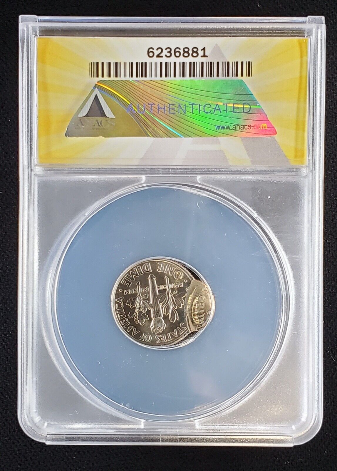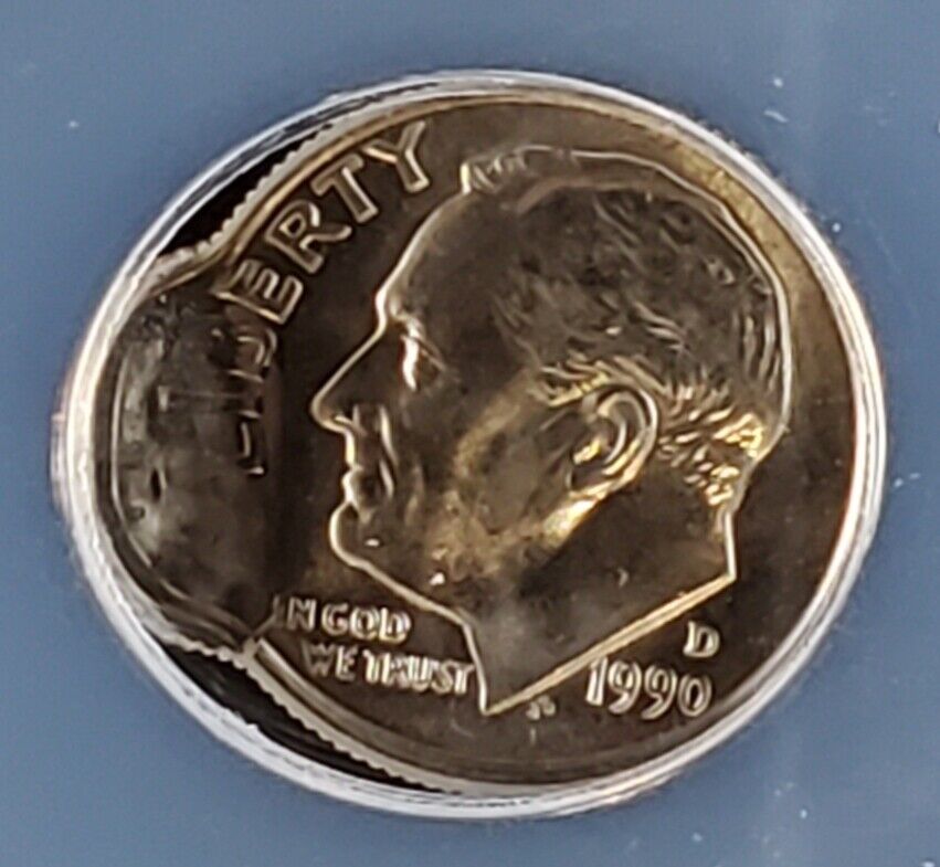 1990-D 10C Roosevelt Dime ANACS MS 64 | Error: Double Struck, 2nd Strike Off-Center, Uniface