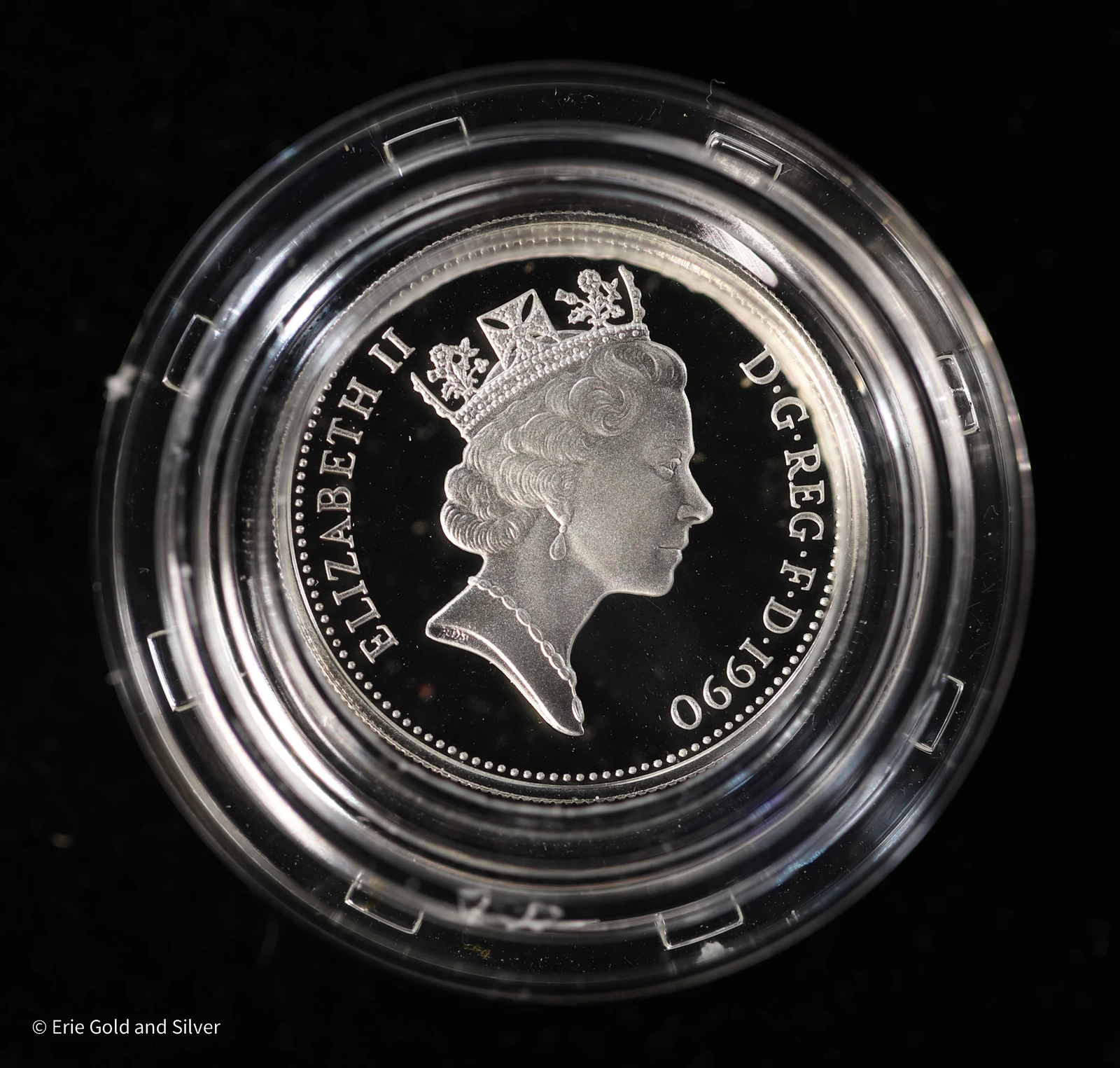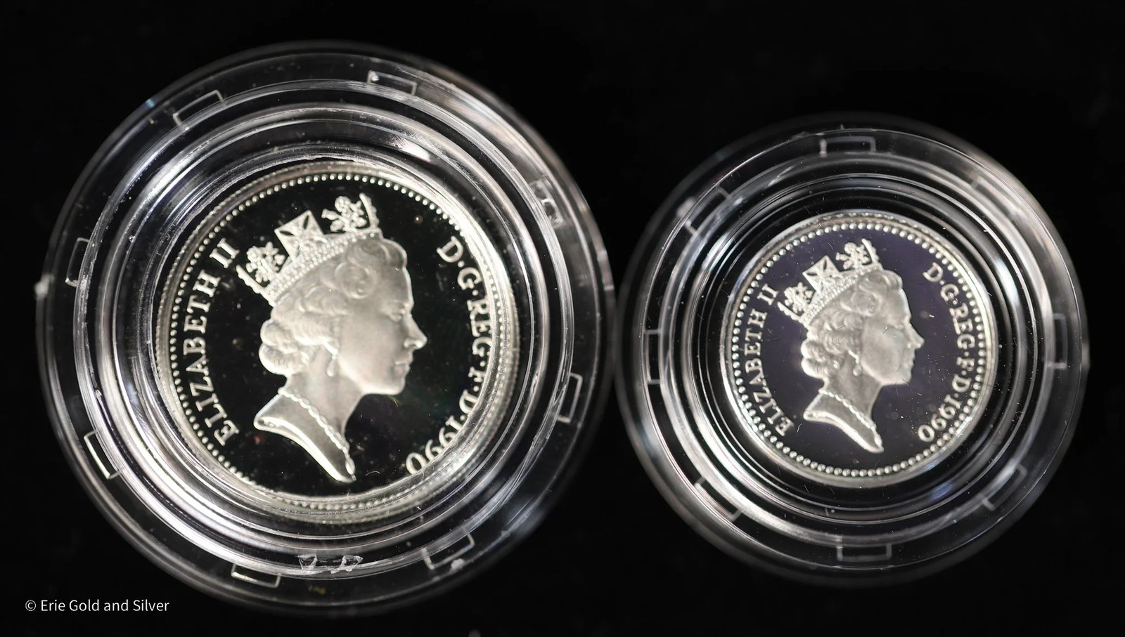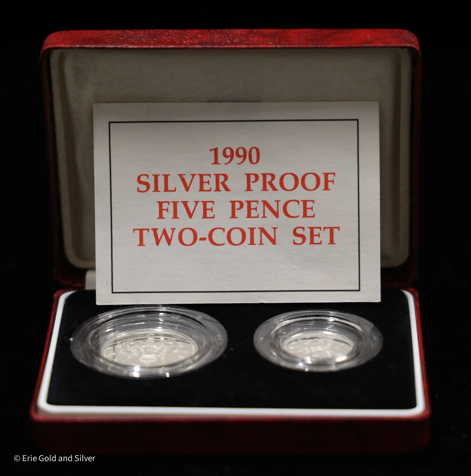 1990 Great Britain United Kingdom Five Pence Silver Proof Two-Coin Set w/Box & COA