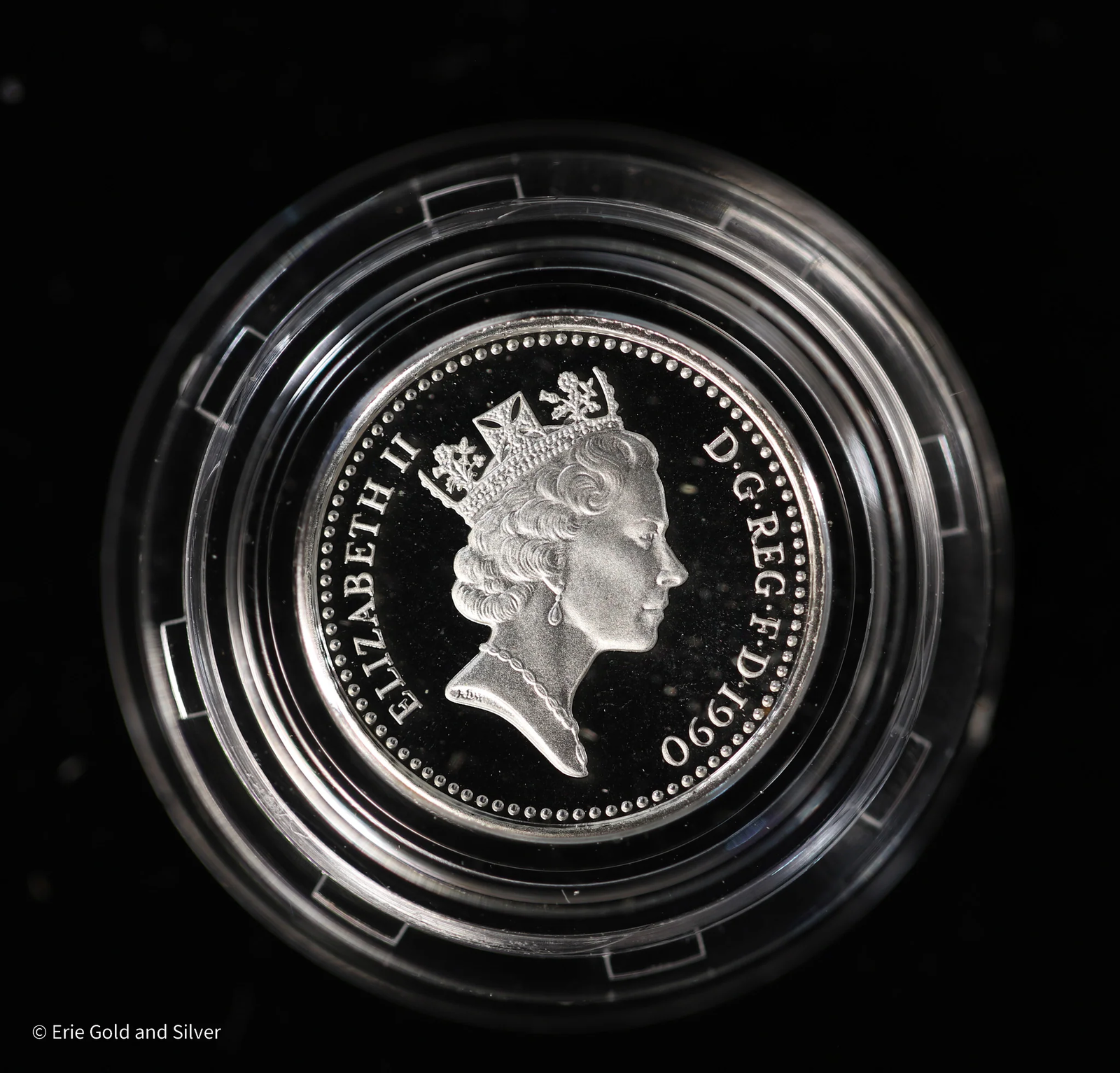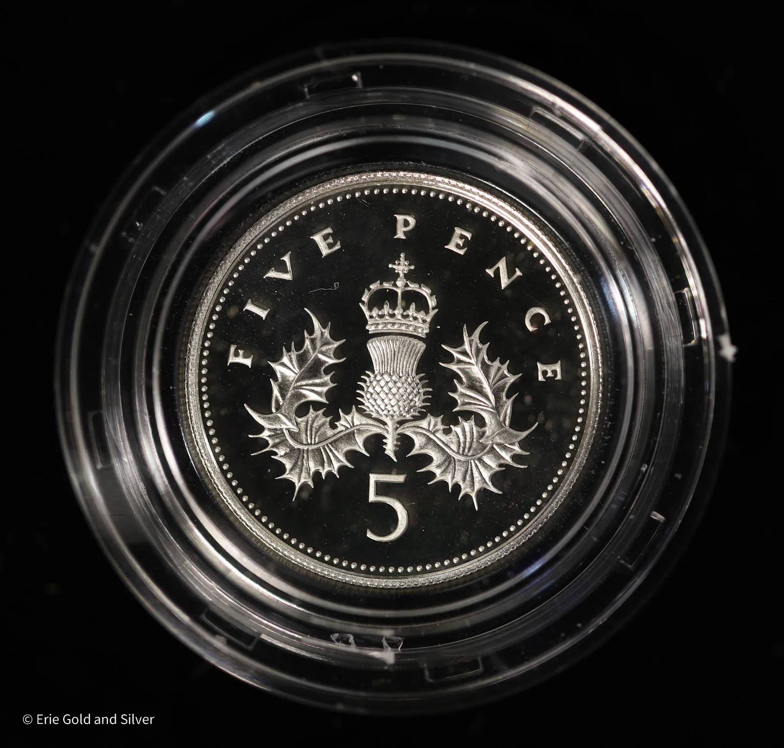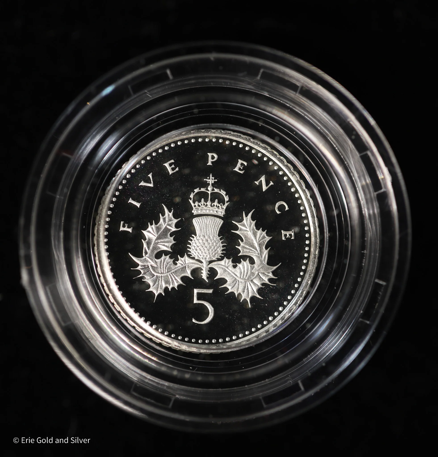 1990 Great Britain United Kingdom Five Pence Silver Proof Two-Coin Set w/Box & COA